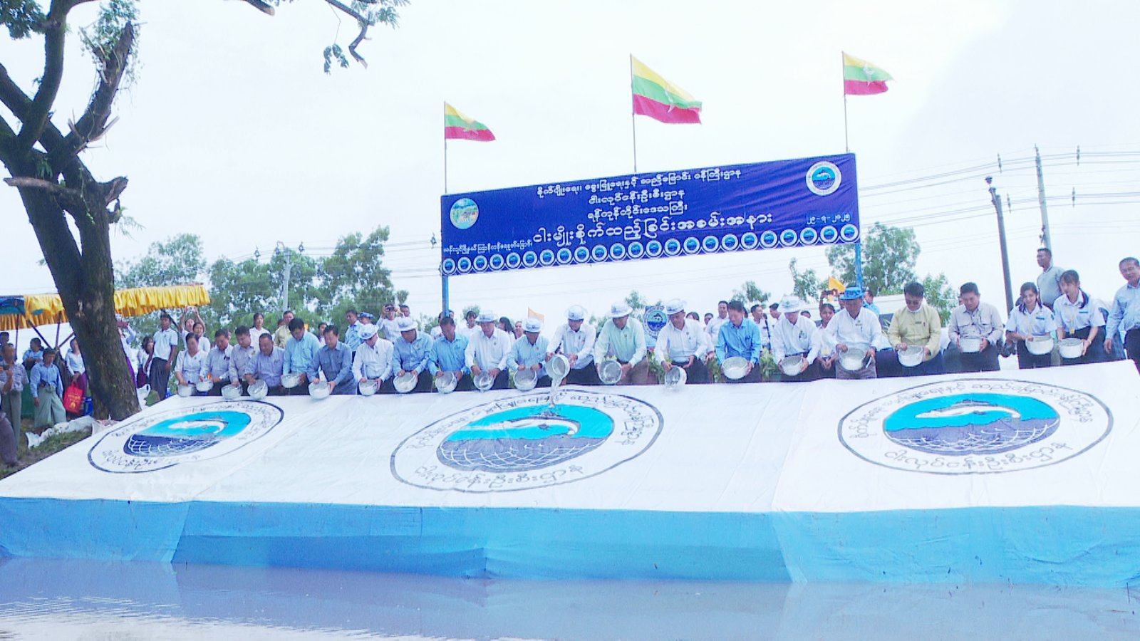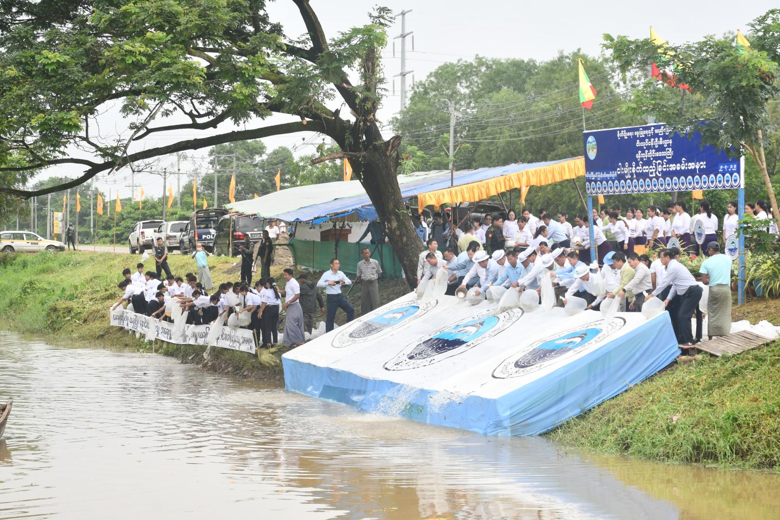 ထို့နောက် ရန်ကုန်တိုင်းဒေသကြီးငါးလုပ်ငန်းဦးစီးဌာန၊ တိုင်းဒေသကြီးဦးစီးဌာနမှူးဦးသံချောင်းက ငါးမျိုးစိုက်ထည့်မှုအခြေအနေအားရှင်း လင်းတင်ပြပြီး ရန်ကုန်တိုင်းဒေသကြီးအစိုးရအဖွဲ့ဝန်ကြီးချုပ် ဦးစိုးသိန်းနှင့်အဖွဲ့ကဌာနဆိုင်ရာများသို့ ငါးသားပေါက်များအားလွှဲပြောင်းပေးအပ်ခဲ့သည်။
