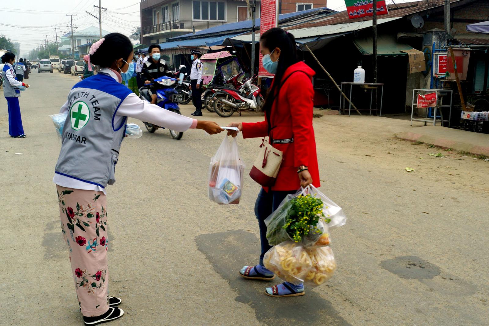 မြို့နယ်ကိုဗစ်-၁၉ ရောဂါကြိုတင်ကာကွယ်ထိန်းချုပ်ရေးနှင့် အရေးပေါ်တုန့်ပြန်ဆောင်ရွက်ရေးကော်မတီဝင်တို့က မြို့မဈေးနှင့် ယာယီပျံကျဈေးတွင် ရောင်းချလျက်ရှိသော ဈေးသည်များ၊ ဈေးရှေ့ ဖြတ်သန်းသွားလာသူများနှင့် ဈေးဝယ်လာသူများအား Mask Campaign ပြုလုပ်၍ Mask (၁၅၀၀)ခုနှင့် Face Shield(၁၀၀)ခုကို အခမဲ့ဖြန့်ဝေပေးခဲ့ပြီး ပြည်သူများအနေဖြင့် နေအိမ်ပြင်ပထွက်သွားလာခြင်းမှ ရှောင်ကြဉ်ရေး၊ မဖြစ်မနေ အိမ်ပြင်ထွက်သွားလာပါက Mask တပ်ဆင်သွားလာရေး၊ လက်ကိုဆပ်ပြာဖြင့် စက္ကန့်(၂၀)ကြာ စနစ်တကျစင်ကြယ်စွာ ဆေးကြောရေး၊ ကျန်းမာရေးနှင့် အားကစားဝန်ကြီးဌာနက ထုတ်ပြန်ထားသော ကိုဗစ်-၁၉ လမ်းညွှန်ချက်များကို စနစ်တကျလိုက်နာ ဆောင်ရွက်ရေး တို့ကို ရှမ်း၊ အာခါ၊ လားဟူနှင့် မြန်မာဘာသာစကားတို့ဖြင့် အသိပညာပေး ဆောင်ရွက်ခဲ့သည်။