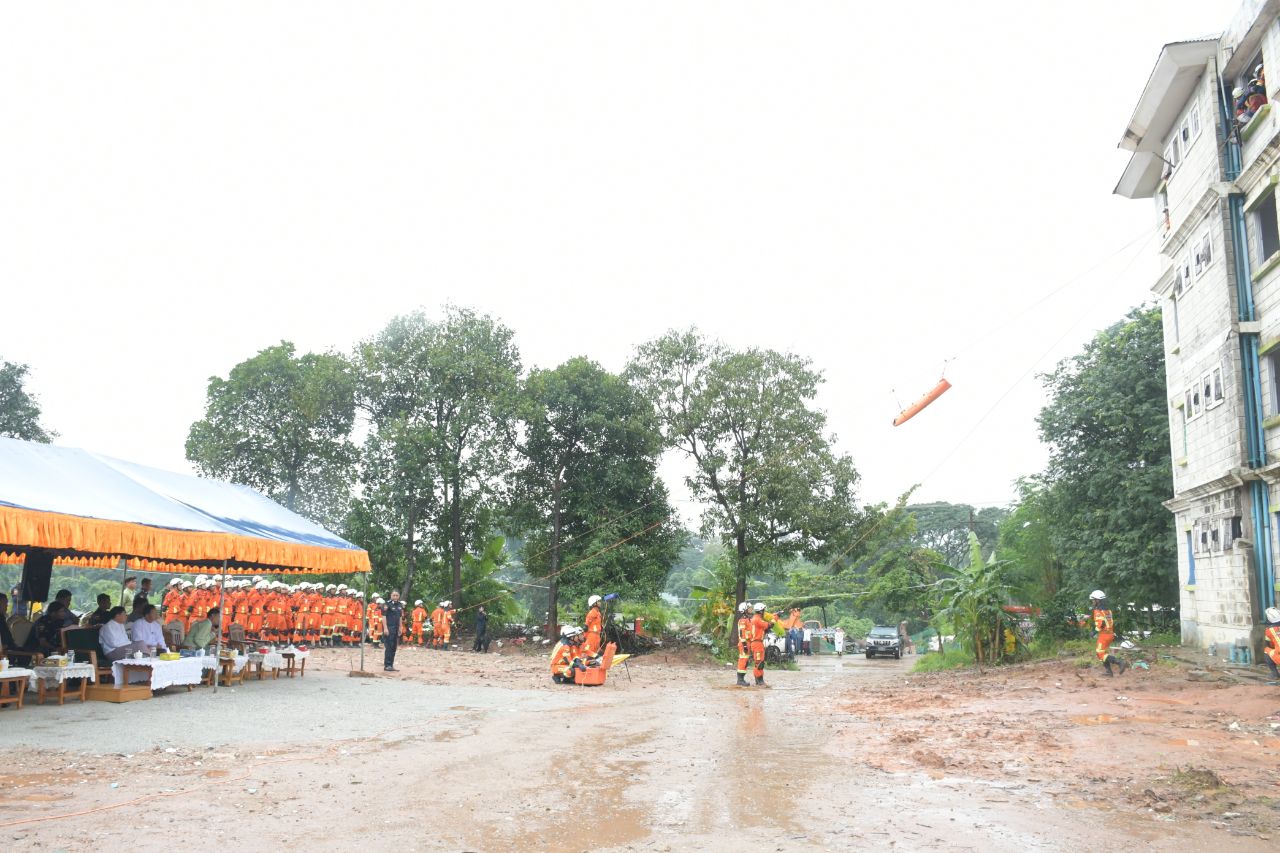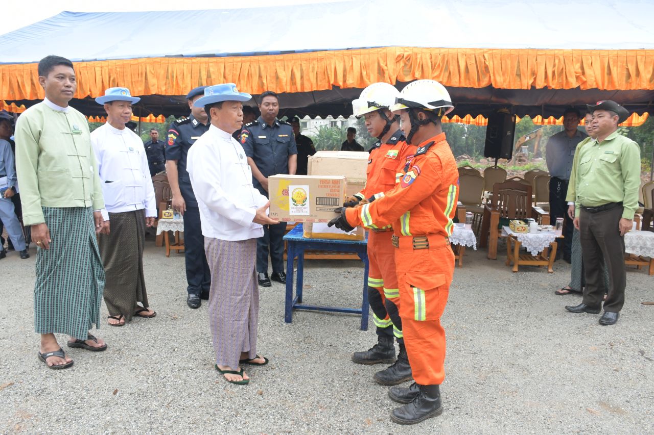 ဦးစွာ မီးသတ်ဦးစီးဌာနမှ အထူးရှာဖွေကယ်ဆယ်ရေးတပ်ဖွဲ့ခေါင်းဆောင်မှ နေပြည်တော်ကောင်စီဥက္ကဋ္ဌထံ လက်တွေ့လေ့ကျင့်ခန်းဆောင်ရွက်ရန် ခွင့်ပြုချက်တောင်းခံပြီး ဆက်လက်၍ ငလျင်ဘေးအန္တရာယ်ရှာဖွေကယ်ဆယ်ရေး လေ့ကျင့်ခန်းများဖြစ်သော မြို့ပြရှာဖွေကယ်ဆယ်ရေးနည်းစနစ်များဖြစ်သည့် ငလျင်ဘေးထိခိုက်သည့် အဆောက်အအုံအားထပ်မံပြိုကျနိုင်မှုရှိ/မရှိ စောင့်ကြည့်တိုင်းတာသည့် ကိရိယာဖြင့်အသုံးပြုခြင်းနည်းစနစ်၊ ပြိုကျနံရံများ ဒေါက်ထောက်ခြင်းနည်းစနစ်၊ ကြိုးအသုံးပြု၍ ထမ်းစင်ချကယ်ဆယ်ရေးနည်းစနစ်၊ အခန်းတွင်းပိတ်မိနေသူများအား နံရံတွင်းဖောက် ဖြတ်တောက်ကယ်ဆယ်ခြင်းနည်းစနစ်၊ အဆောက်အအုံတွင်ပိတ်မိနေသူများအား လှေခါးနှင့်ကြိုးများအသုံးပြု၍ ကယ်ဆယ်ခြင်းနည်းစနစ်များကို လက်တွေ့လေ့ကျင့်ပြသခဲ့ကြသည်။ ထို့နောက် နေပြည်တော်ကောင်စီဥက္ကဋ္ဌက လေ့ကျင့်ခန်းတွင်ပါဝင်ဆောင်ရွက်ခဲ့ကြသော အထူးရှာဖွေကယ်ဆယ်ရေးတပ်ဖွဲ့ဝင်များအားတွေ့ဆုံ၍ အမှာစကားပြောကြားရာ ငလျင်ဘေးအန္တရာယ်နှင့်အခြားသဘာဝဘေးအန္တရာယ်များ ရှာဖွေကူညီကယ်ဆယ်နိုင်ရေးအတွက် လူ၊ စက်၊ ယာဉ်၊ ယန္တရားများအား အသင့်စုဖွဲ့ပြင်ဆင်ခြင်း၊ ဇာတ်တိုက်လေ့ကျင့်ခြင်းများ အမြဲမပြတ်ဆောင်ရွက်ရန်လိုကြောင်း၊ ရှာဖွေကယ်ဆယ်ရေးတပ်ဖွဲ့ဝင်များက အရည်အချင်းပြည့်ဝနေရေးနှင့် ရှာဖွေကယ်ဆယ်ရေးပစ္စည်းများအား ကျွမ်းကျင်ပိုင်နိုင်စွာအသုံးချတတ်နိုင်ရေး လေ့ကျင့်ဆောင်ရွက်ထားရန်လိုကြောင်း၊ ပြည်သူလူထု၏ အသက်အိုးအိမ်စည်းစိမ်များကို ကာကွယ်စောင့်ရှောက်ရန်နှင့် ထိခိုက်ဆုံးရှုံးမှုအနည်းဆုံးဖြစ်အောင် ဆောင်ရွက်ရန်လိုကြောင်း၊ သဘာဝဘေးဖြစ်ပွားလာပါက အမိန့်ကိုစောင့်ဆိုင်းရန်မလိုဘဲ အချိန်နှင့်တစ်ပြေးညီ အမြန်ဆုံးသွားရောက်ကူညီဆောင်ရွက်ရန်လိုကြောင်းပြာကြားပြီး လေ့ကျင့်ခန်းတွင် ပါဝင်ဆောင်ရွက်သူများအား စားသောက်ဖွယ်ရာများပေးအပ်ခဲ့သည်။