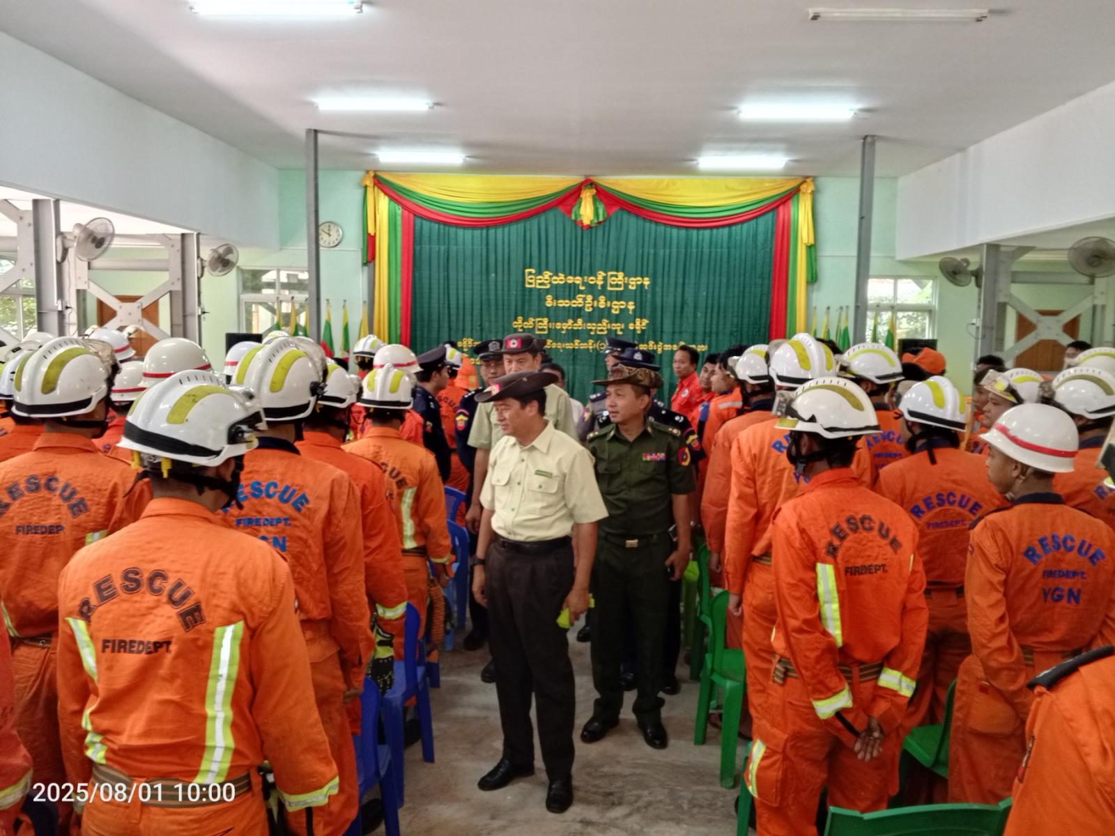 ရန်ကုန်တိုင်းဒေသကြီး၊ တိုက်ကြီးမြို့နယ်တွင် မီးသတ်ဦးစီးဌာနက တိုက်ကြီး၊ လှည်းကူး၊ မှော်ဘီခရိုင် ခရိုင်အဆင့်မီးငြိမ်းသတ်ရေးနှင့်ရှာဖွေကယ်ဆယ်ရေးသင် တန်း(၁/၂၀၂၅) သင်တန်း ဆင်းပွဲကို ဩဂုတ် ၁ ရက် နံနက် ၉ နာရီခွဲက မြို့နယ်အထွေထွေအုပ်ချုပ်ရေးဦးစီးဌာန အစည်းအဝေးခန်းမ၌ ကျင်းပခဲ့သည်။