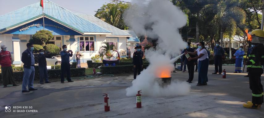 အဆိုပါ မီးဘေးလုံခြုံရေးဟောပြောခြင်းနှင့် ဇာတ်တိုက်လေ့ကျင့်မှုများ ပြုလုပ်ရာသို့ စည်ပင်ဧည့်ရိပ်သာ ဝန်ထမ်း (၂၈) ဦး တက်ရောက်ခဲ့သည်။ ထို့နောက် ဇမ္ဗူသီရိမြို့နယ် မီးသတ်ဦးစီးမှူး ဦးစီးအရာရှိ ဉီးဝင်းကျော်နှင့် မီးသတ်တပ်ဖွဲ့ဝင်များမှ မီးဘေး အန္တရာယ်ဆိုင်ရာများကို သတိရှိစေရန်နှင့် အရေးပေါ် ဆက်သွယ်ရမည့် ဖုန်းနံပါတ်များ၊ လိုက်နာဆောင်ရွက်ရမည့် အချက်များ၊ မီးသတ်ဆေးဘူး အသုံးပြုနည်းများအား အသိပညာပေး ပြောကြားပြီး မီးသတ်ယာဉ်၊ မီးသတ်ဆေးဘူးများဖြင့် မီးငြိမ်းသတ်ခြင်း များကို မီးသတ်ဦးစီးမှူးနှင့် မီးသတ် တပ်ဖွဲ့ဝင်များက လက်တွေ့ရှင်းလင်းသရုပ်ပြသခဲ့ပြီး စည်ပင်ဧည့်ရိပ်သာ ဝန်ထမ်းများအား လက်တွေ့မီးငြှိမ်းသတ်ခြင်း ဆောင်ရွက်စေခဲ့ကြောင်း သိရသည်။