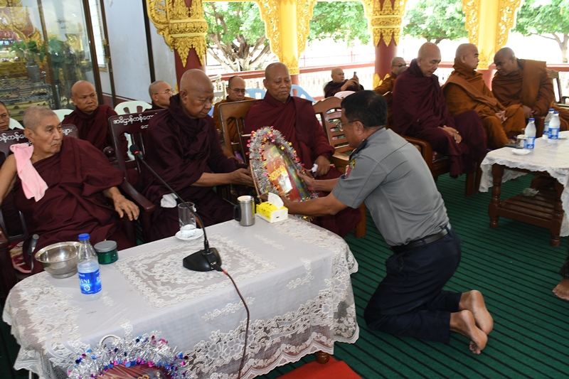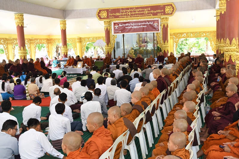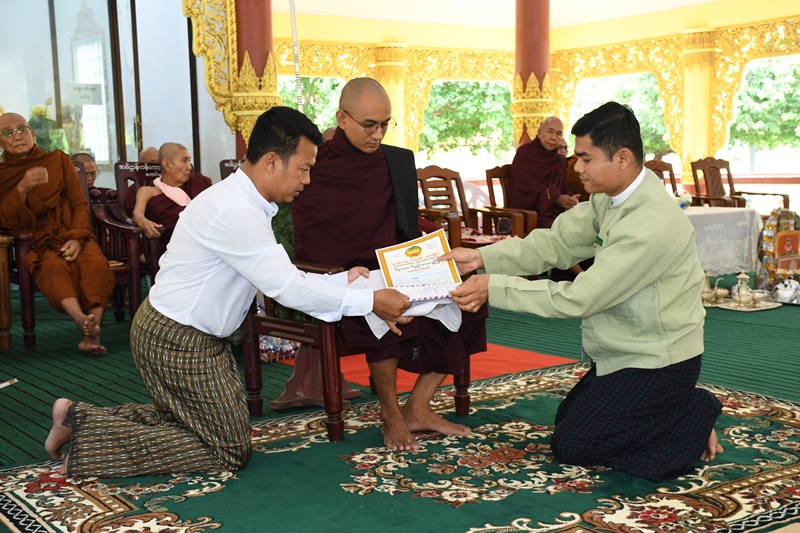 အခမ်းအနားကို နမောတဿသုံးကြိမ်ရွတ်ဆို ဘုရားကန်တော့ဖွင့်လှစ်ခဲ့ပြီး တက်ရောက်လာသူများက နိုင်ငံတော်ဩဝါဒါစရိယ ဘဒ္ဒန္တာမောက္ခာ ရွှေစေတီကျောင်းတိုက်ဆရာတော်ထံမှ ငါးပါးသီလ ခံယူဆောက်တည်၍ မြို့နယ်သံဃနာယကအဖွဲ့ဥက္ကဋ္ဌ ဘဒ္ဒန္တပညာသာမိ မဟာဂန္ဓဝါစကကဏ္ဍိတ ရွှေစေတီကျောင်းတိုက် ဆရာတော်မှ အောင်လက်မှတ်ဆပ်ကပ်ခြင်းနှင့်စပ်လျဉ်း၍ ရှင်းလင်းမိန့်ကြားခဲ့ပြီး ကျောက်ဆည်ခရိုင် ခေတ္တခရိုင်ရဲတပ်ဖွဲ့မှူး ရဲမှူးမြင့်လွင်၊ ဒုတိယမြို့နယ်အုပ်ချုပ်ရေးမှူး ဦးကျော်ကျော်မင်းနှင့်တာဝန်ရှိသူများက ပင့်သံဃာဆရာတော်ကြီးများနှင့် စာအောင်သံဃာတော်များ အား ဝတ္ထုငွေ၊သင်္ကန်းခြင်းများနှင့် စာအောင်လက်မှတ်၊ စာအောင်ဆုများ ဆက်ကပ်လှူဒါန်းခဲ့ပြီး မန္တလေးတိုင်းဒေသကြီး ဩဝါဒါစရိယရွှေကူညီကျောင်း ဆရာတော် ဘဒ္ဒန္တဇနိတာဘိဝံသ ဆရာတော်ထံမှ ရေစက်သွန်းချ အနုမောဒနာ တရားနာယူကြည်ညိုခဲ့ပြီး အခမ်းအနားကို ဗုဒ္ဓသာသနံသိရံတိဌတု(၃)ကြိမ်ရွတ်ဆိုဆုတောင်း၍ ရုပ်သိမ်းခဲ့ကြောင်း သိရသည်။