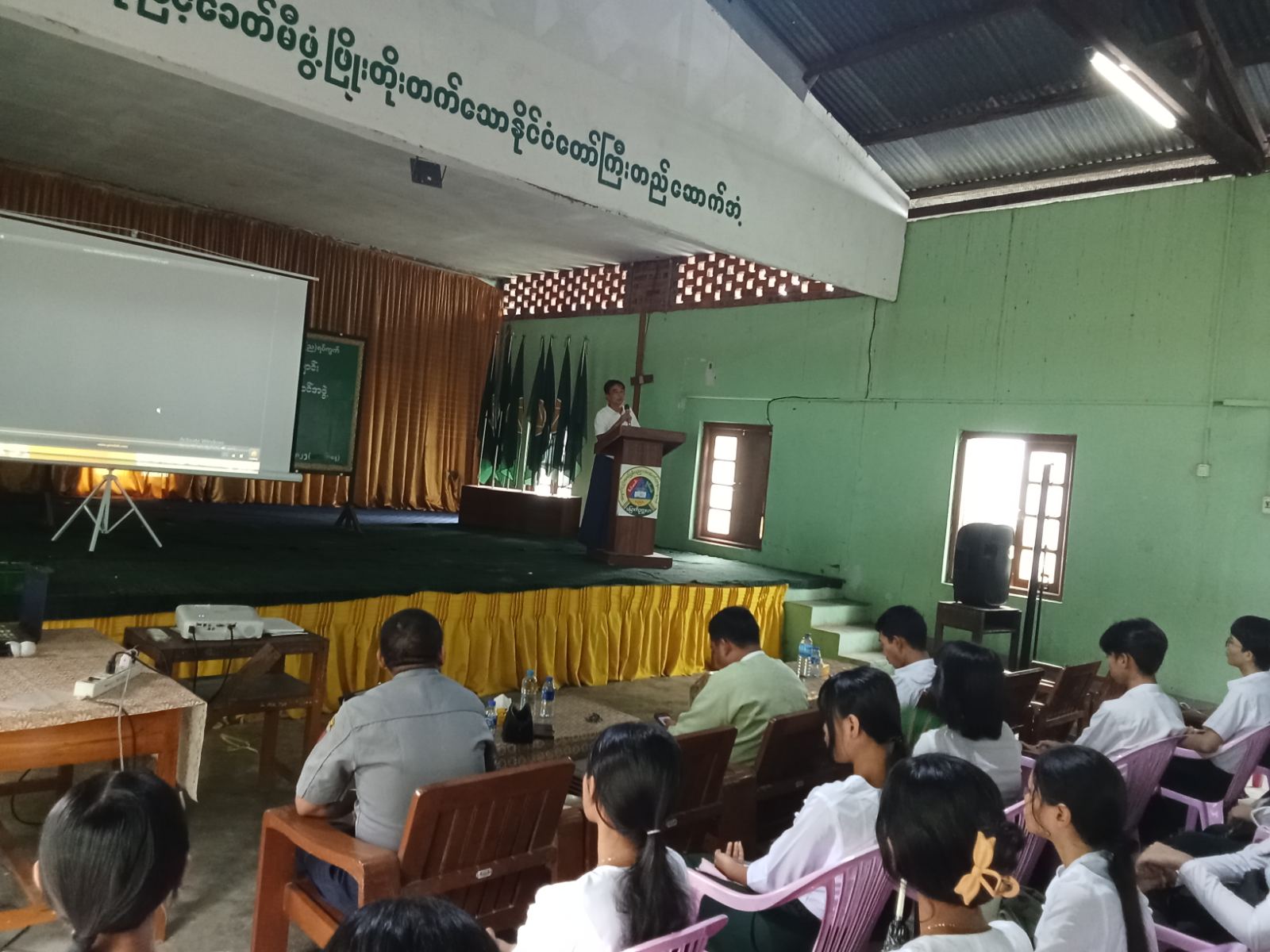 ရှေးဦးစွာ ဒုတိယမြို့နယ်အုပ်ချုပ်ရေးမှူး ဦးကျော်မိုးသူက အဖွင့်အမှာစကားပြောကြားခဲ့ပြီး ဝေဘာဂီနယ်မြေရဲစခန်းမှ စခန်းမှူး ရဲအုပ်နေမျိုးလှိုင်က အင်တာနက်အွန်လိုင်းအသုံးပြု၍ လောင်းကစားမှု၊ လိမ်လည်မှုနှင့် ဆိုက်ဘာလုံခြုံရေးဆိုင်ရာများအား ကျောင်းသား၊ ကျောင်းသူများ သတိပြုဆင်ခြင်နိုင်ရေးနှင့် နိုင်ငံသားစိစစ်ရေးကတ်များအသုံးပြု၍ အွန်လိုင်းဘဏ်စနစ်ဖြင့် ငွေကြေးလိမ်လည်နေမှုဖြစ်စဉ်များ၊ ဖြစ်ပွားနေမှုများ၊ သတိထားရမည့်အချက်များ၊ အိမ်နီးချင်းနိုင်ငံများ၌ ဆောင်ရွက်လျက်ရှိသည့် ဆက်သွယ်ရေးလိမ်လည်မှုတိုက်ဖျက်ရေးဆိုင်ရာ (Video Click)အား ပြသရှင်းလင်းခြင်းနှင့် အွန်လိုင်းလိမ်လည်မှုများကြောင့် ကျခံရမည့်ပြစ်ဒဏ်များ စသည့်တို့အား အသိပညာပေးဟောပြောခဲ့ကြပြီး အမှတ်(၃)အခြေခံပညာအထက်တန်း ကျောင်းအုပ်ဆရာကြီး ဦးခိုင်စိုးက ကျေးဇူးတင်စကားပြောကြားခဲ့သည်။