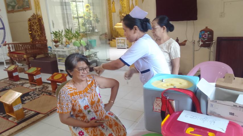 ထိုသို့ထိုးနှံပေးလျက်ရှိရာ ဇူလိုင် ၂၉ ရက် နံနက် ၉ နာရီအချိန်က ပြည်သူ ၂၄၆ ဦးအား ကိုဗစ်-၁၉ ရောဂါ ကာကွယ်ဆေး (Pfizer Comirnaty JN.1) ထိုးနှံပေးခြင်းကို မြို့နယ်စီမံအုပ်ချုပ်ရေးအဖွဲ့ဥက္ကဋ္ဌ ဦးစန်းလွင်၏ပံ့ပိုးမှုဖြင့် ဒဂုံမြို့သစ်(တောင်ပိုင်း)မြို့နယ် ပြည်သူ့ကျန်းမာရေးဦးစီးဌာနမှ အခြေခံကျန်းမာရေးဝန်ထမ်းများသည် မြို့နယ်အမျိုးသမီးရေးရာအဖွဲ့ မိခင်နှင့်ကလေးစောင့်ရှောက်မှုကြီးကြပ်ရေးအသင်းဝင်များ၊ ပရဟိတလူမှုကူညီရေးအသင်းအဖွဲ့များနှင့်ပူးပေါင်း၍ (၆၅)ရပ်ကွက်၊ ပုလဲမွန်အိမ်ရာတွင် ဆောင်ရွက်ပေးကြောင်း သိရသည်။