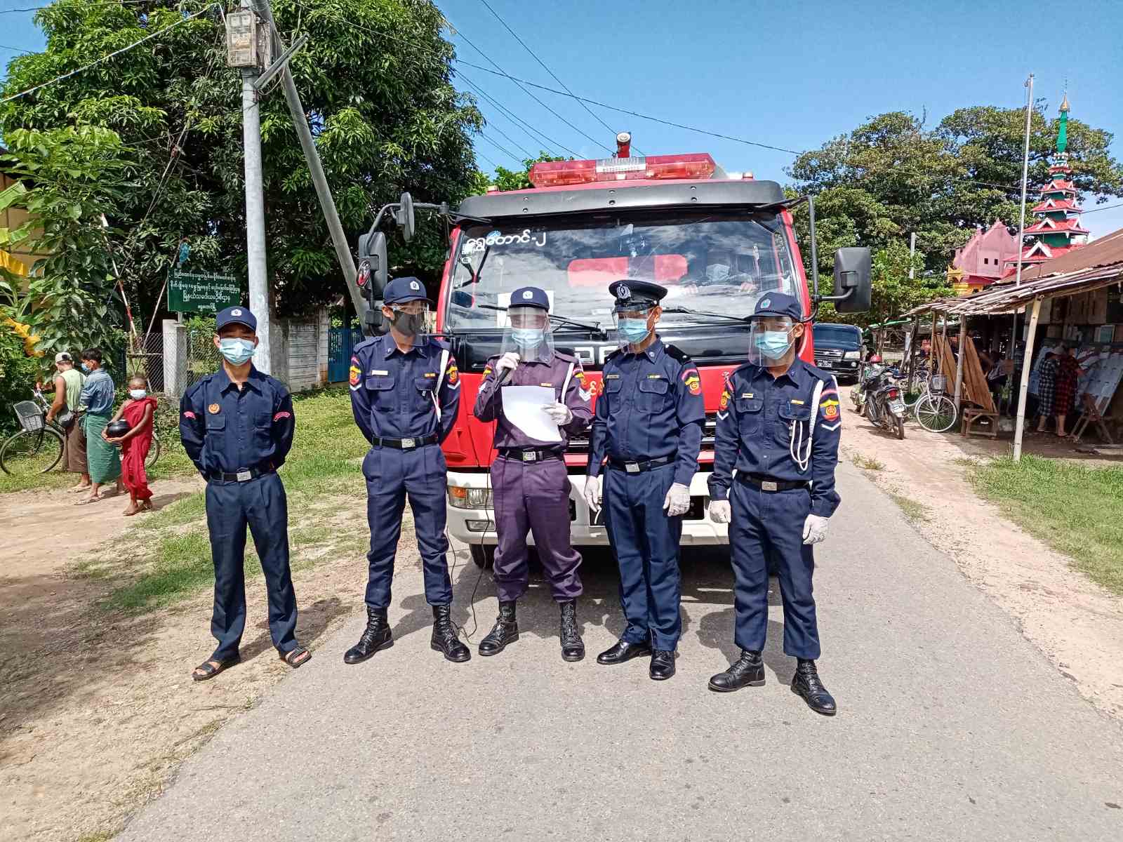 ထိုသို့ဆောင်ရွက်ရာတွင် လူစည်ကားရာနေရာများဖြစ်သည့် စျေးများ၊ ရပ်ကွက်များ၊ ကျေးရွာပြည်သူ များအား ကိုဗစ်-၁၉ ရောဂါကူးစက်ခံရပါက ဖြစ်ပွားတက်သော ရောဂါလက္ခဏာများ၊ ရောဂါကူးစက်မှု မဖြစ်ပွားစေရန် တစ်ဦးနှင့်တစ်ဦး ၆ ပေအကွာ နေသင့်ကြောင်း မိမိတို့ရပ်ကွက်၊ ကျေးရွာများသို့ နေရပ်ပြန်များ ပြန်လည်ရောက်ရှိလာသူများရှိပါက သက်ဆိုင်ရာ အုပ်ချုပ်ရေးမှူးမှတစ်ဆင့် သတင်းပေးပို့ရ မည်ဖြစ်ကြောင်း၊ ပြည်သူများအနေဖြင့် ကျန်းမာရေးနှင့်အားကစား ဝန်ကြီးဌာန က ထုတ်ပြန်ထားသော ကျန်းမာရေးအသိပညာပေးညွှန်ကြားချက်များကို လိုက်နာကြရန်၊ ထုတ်ပြန်ထားသော ဥပဒေများ ကို သိရှိလိုက်နာကြရန် မီးသတ်မော်တော်ယာဉ်ဖြင့် လိုက်လံအသိပေးနှိုးဆော်လျက်ရှိကြောင်း သတင်းရရှိ သည်။