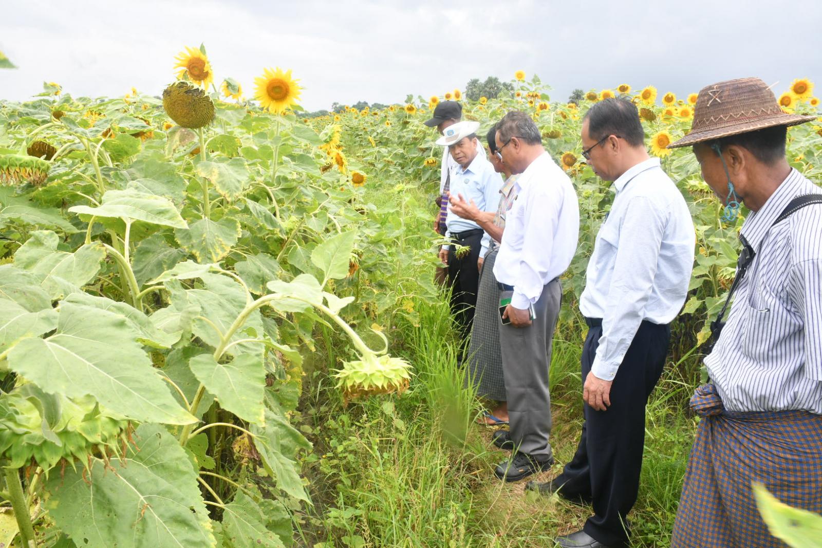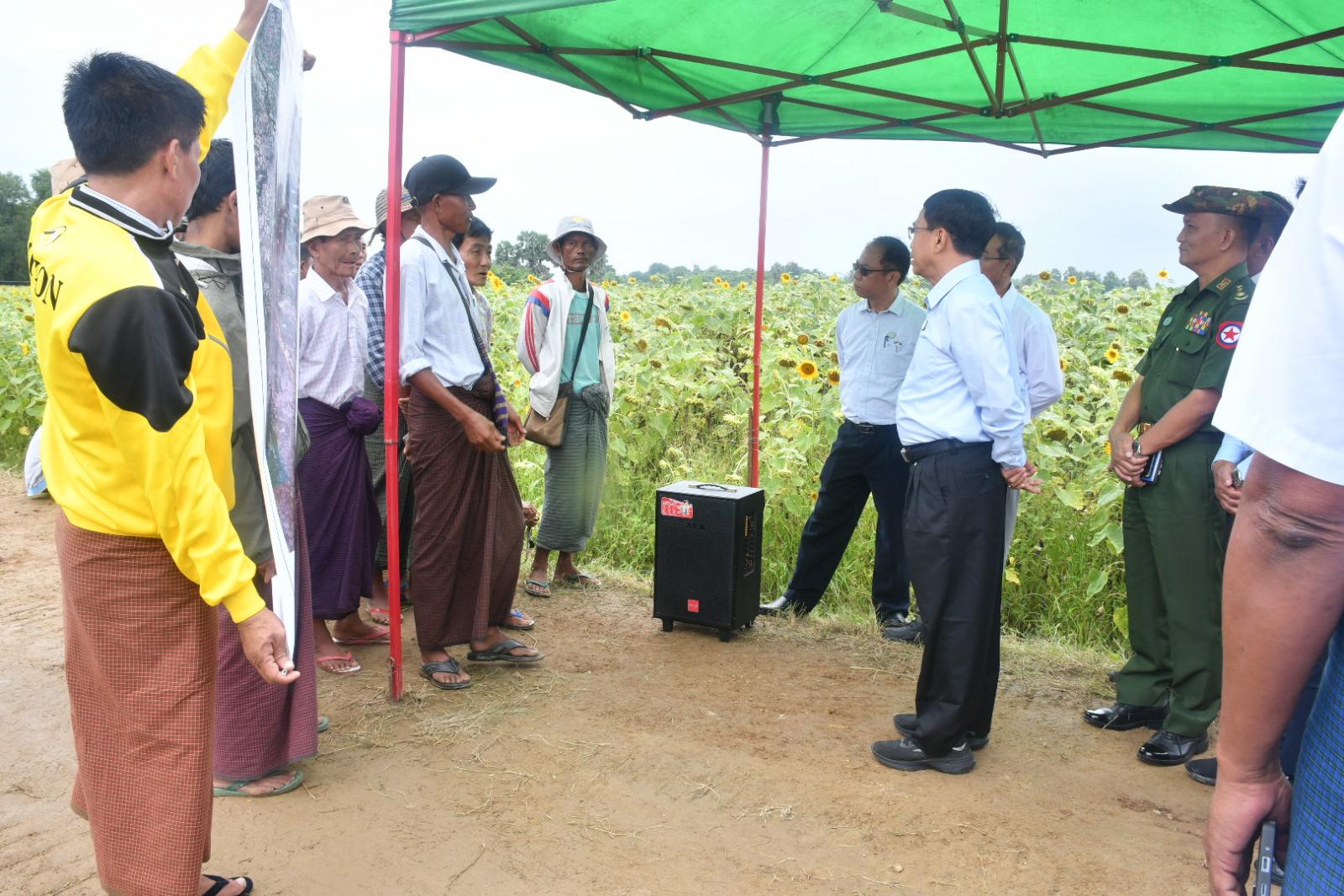 ဆက်လက်၍ ယမန်နေ့နံနက်ပိုင်းတွင် နေပြည်တော်ကောင်စီဥက္ကဋ္ဌဦးသန်းထွန်းဦးသည် တပ်ကုန်းမြို့နယ်၊ ကင်မွန်းတန်းကျေးရွာအုပ်စု၊ ကြံဘိုကျေးရွာသို့သွားရောက်ပြီး ကွင်းအမှတ်(၁၃၁၇)ရှိ ဦးကျော်ဆွေ၏နေကြာစိုက်ခင်းနှင့် ရာသီသီးနှံများစိုက်ပျိုးထားရှိမှုအား ကြည့်ရှုခဲ့ရာ တပ်ကုန်းမြို့နယ် စိုက်ပျိုးရေးဦးစီးမှူးမှရာသီသီးနှံများစိုက်ပျိုးထားရှိမှုနှင့်ပတ်သက်၍ရှင်းလင်းတင်ပြပြီး နေပြည်တော်ကောင်စီဥက္ကဋ္ဌဦးသန်းထွန်းဦးက တောင်သူများနှင့်တွေ့ဆုံကာ တောင်သူများမှရာသီပြည့်သီးနှံစိုက်ပျိုးနိုင်ရေးနှင့်ပတ်သက်၍တင်ပြချက်များအပေါ် ပေါင်းစပ်ညှိနှိုင်းဆောင်ရွက်ပေးပြီး ဖြစ်ထွန်းအောင်မြင်နေသည့်နေကြာစိုက်ခင်းအား ကြည့်ရှု အားပေးခဲ့သည်။