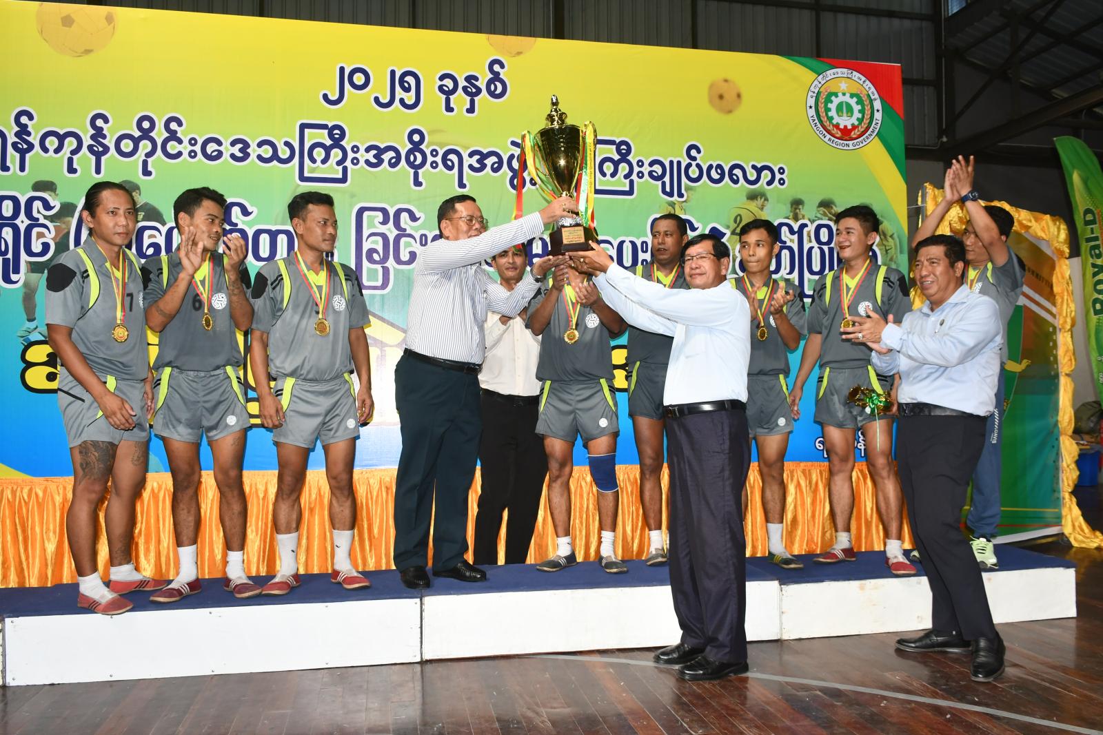 ဆက်လက်၍ ဆုချီးမြှင့်ပွဲအခမ်းအနားကိုကျင်းပရာ တက်သစ်စ(အမျိုးသမီး)ဆုရရှိသော သင်္ဃန်းကျွန်းခရိုင်အသင်းမှ မဖြူစင်ဖြိုး၊ တက်သစ်စ(အမျိုးသား)ဆု ရရှိသော သန်လျင်ခရိုင်အသင်းမှ မောင်ထက်မြတ်(ခ) Omestar၊ အကောင်းဆုံးဆုရရှိသော ဗိုလ်တထောင်ခရိုင်အသင်းမှ မောင်ဇင်လင်းထက်၊ နှစ်သိမ့်ဆုရရှိသော ဒဂုံမြို့သစ်ခရိုင်အသင်း၊ တတိယဆုရရှိသော မရမ်းကုန်းခရိုင်အသင်း၊ ဒုတိယဆုရရှိသော အင်းစိန်ခရိုင်အသင်းတို့အား တိုင်းဒေသကြီးအစိုးရအဖွဲ့ဝင်များနှင့် တာဝန်ရှိသူများက ဆုတံဆိပ်၊ တစ်ဦးချင်းဆုတံဆိပ်များ၊ ဂုဏ်ပြုချီးမြှင့်ငွေများကို ပေးအပ်ခဲ့ကြသည်။
