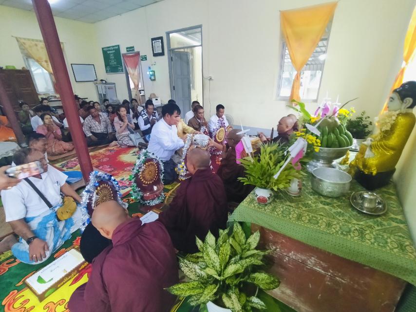 အဆိုပါ ကျင်းပရာ၌ အမှတ်(၈)ရပ်ကွက် သံသရာအေး မိုးကုတ်ဝိပ္ပသနာ ဓမ္မရိပ်သာ ဆရာတော်ဒေါက်တာ အရှင်ဝါသဝနှင့် သံဃာတော်အရှင်သူမြတ်များက ရုံးအတွင်း ကိန်းဝပ်စံပါယ်တော်မူသော ဗုဒ္ဓရုပ်ပွားတော်မြတ်အား ဗုဒ္ဓါဘိသေက အနေကဇာတင်ခြင်းနှင့် အန္တရာယ်ကင်း ပရိတ်တရားတော်များ ချီးမြှင့်လျက်ရှိသည်။
