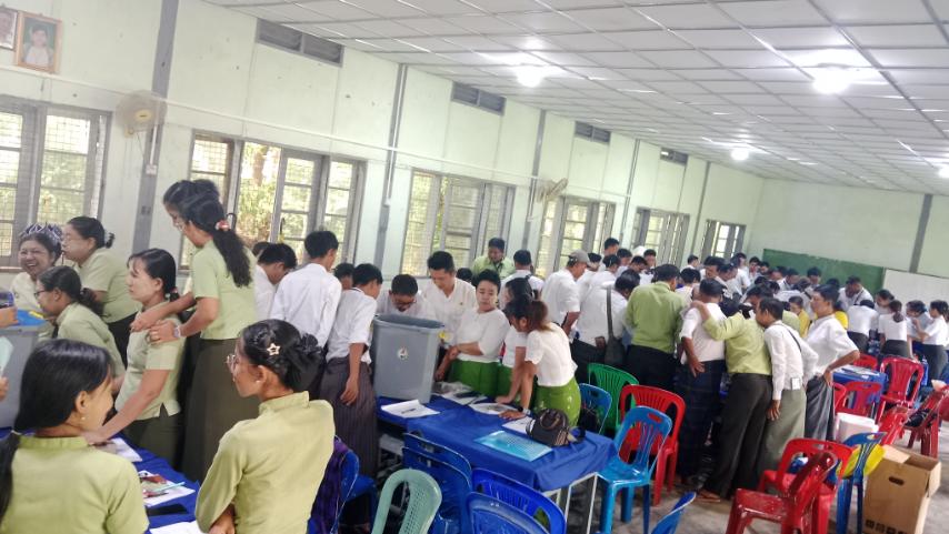 ပြည်ထောင်စုရွေးကောက်ပွဲကော်မရှင်သည် ပါတီစုံဒီမိုကရေစီအထွေထွေရွေးကောက်ပွဲတွင် မြန်မာအီလက်ထရောနစ်မဲပေးစက် (MEVM) ကိုင်တွယ်အသုံးပြုခြင်းဆိုင်ရာ မြို့နယ်ဆင့်ပွားသင်တန်း အပတ်စဉ်(၆/၂၀၂၅)ဖွင့်ပွဲအခမ်းအနားကို ဇူလိုင် ၃၁ ရက်က ရန်ကုန်တိုင်းဒေသကြီး၊ တွံတေးခရိုင်၊ ကော့မှူးမြို့နယ် မြို့သစ်ရပ်ကွက် အခြေခံပညာအထက်တန်းကျောင်း အ.ထ.က (ကော့မှူး) ကျောင်းနှင်းဆီခန်းမ၌ ကျင်းပခဲ့ကြောင်း သိရသည်။