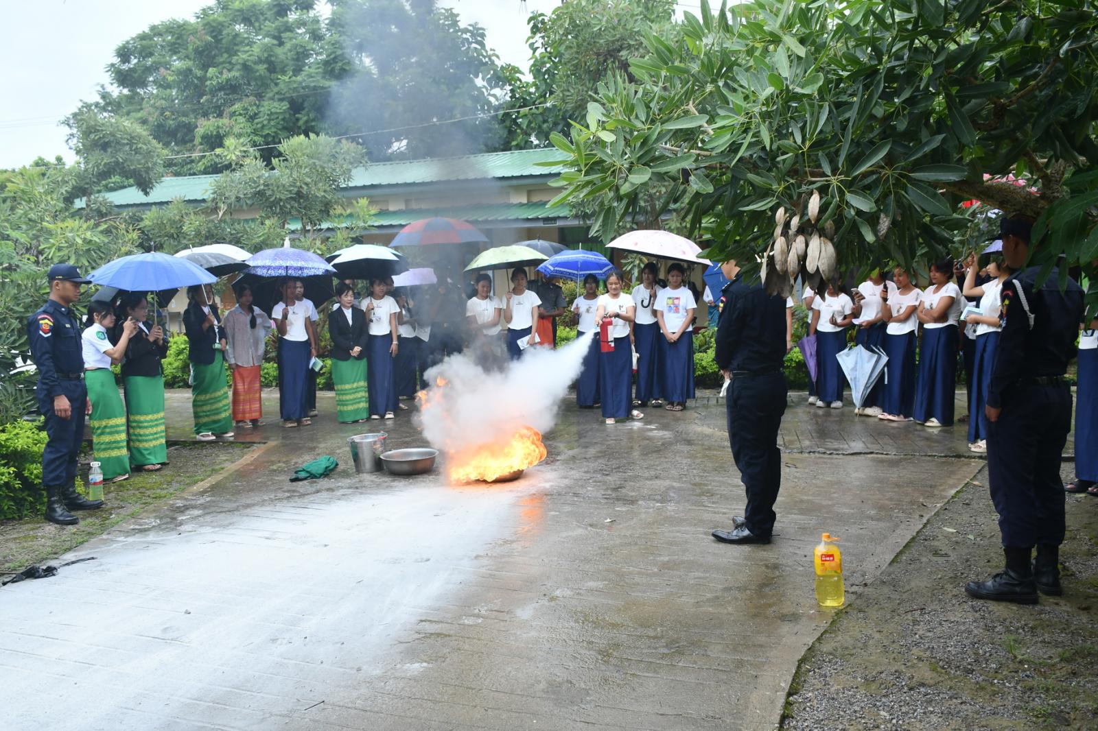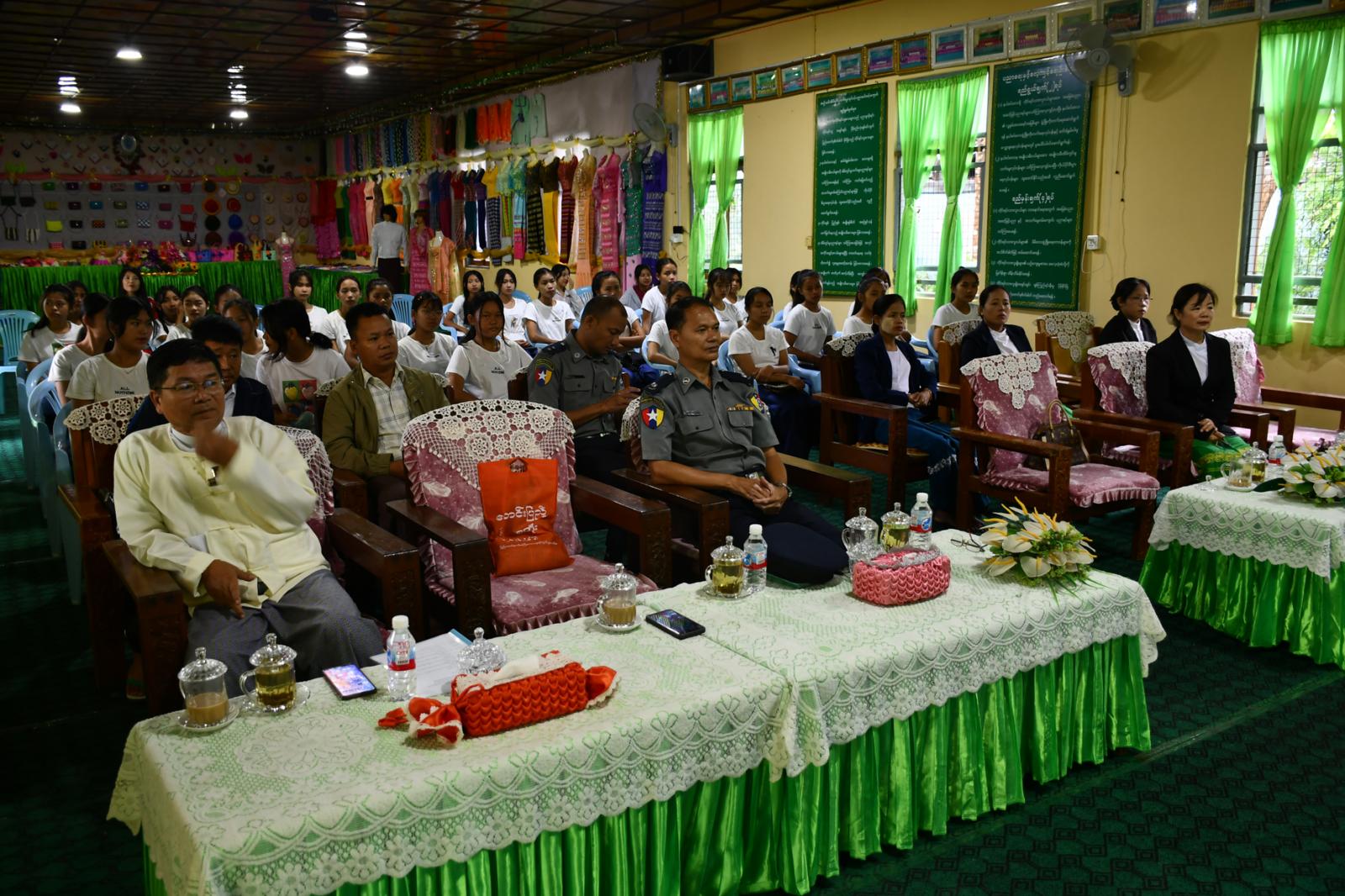 ယင်းနောက် မူဆယ်မြို့ မြို့နယ်ဥပဒေဆိုင်ရာအထောက်အကူပေးရေးအဖွဲ့ဥက္ကဋ္ဌ ဦးခင်ဇော်က အဖွဲ့မှ ကူညီဆောင်ရွက်ပေးမည့်လုပ်ငန်းများနှင့် စစ်မှုထမ်းဥပဒေအကြောင်း၊ ကုန်းလမ်းပို့ဆောင်ရေးညွှန်ကြားမှုဦးစီးဌာနမှ ဒုတိယညွှန်ကြားရေးမှူး ဦးအောင်ခင်က မော်တော်ယာဉ်/ မော်တော်ဆိုင်ကယ်များ မောင်းနှင်ရာတွင် လိုက်နာရမည့် ယာဉ်စည်းကမ်း/ လမ်းစည်းကမ်းဆိုင်ရာများအကြောင်း၊ မီးသတ်ဦးစီးဌာနမှ ဦးစီးအရာရှိ ဦးကျော်မျိုးက မီးဘေးအန္တရာယ် ကြိုတင်ကာကွယ်ရေးနှင့် မီးလောင်ကျွမ်းမှု ဖြစ်ပေါ်ပါက ဆောင်ရွက်ရမည့်လုပ်ငန်းများအကြောင်းကို ဆွေးနွေးဟောပြောခဲ့ပြီး အမျိုးသမီးအိမ်တွင်းမှု သက်မွေးလုပ်ငန်းပညာသင်တန်းကျောင်းမှ ကျောင်းအုပ်ဆရာမကြီး ဒေါ်နန်းစောရင်က ကျေးဇူးတင်စကားပြောကြားခဲ့ကာ အခမ်းအနားကို ရုပ်သိမ်းခဲ့ပါသည်။ အခမ်းအနားအပြီးတွင် မီးလောင်ကျွမ်းမှုဖြစ်ပွားပါက အရေးပေါ်မီးငြှိမ်းသတ်မှုအား လက်တွေ့သရုပ်ပြဆောင်ရွက်ခဲ့ရာ ဌာနဆိုင်ရာများ၊ ဆရာမများ၊ သင်တန်းသူများ တက်ရောက်ခဲ့ကြောင်း သိရှိရပါသည်။