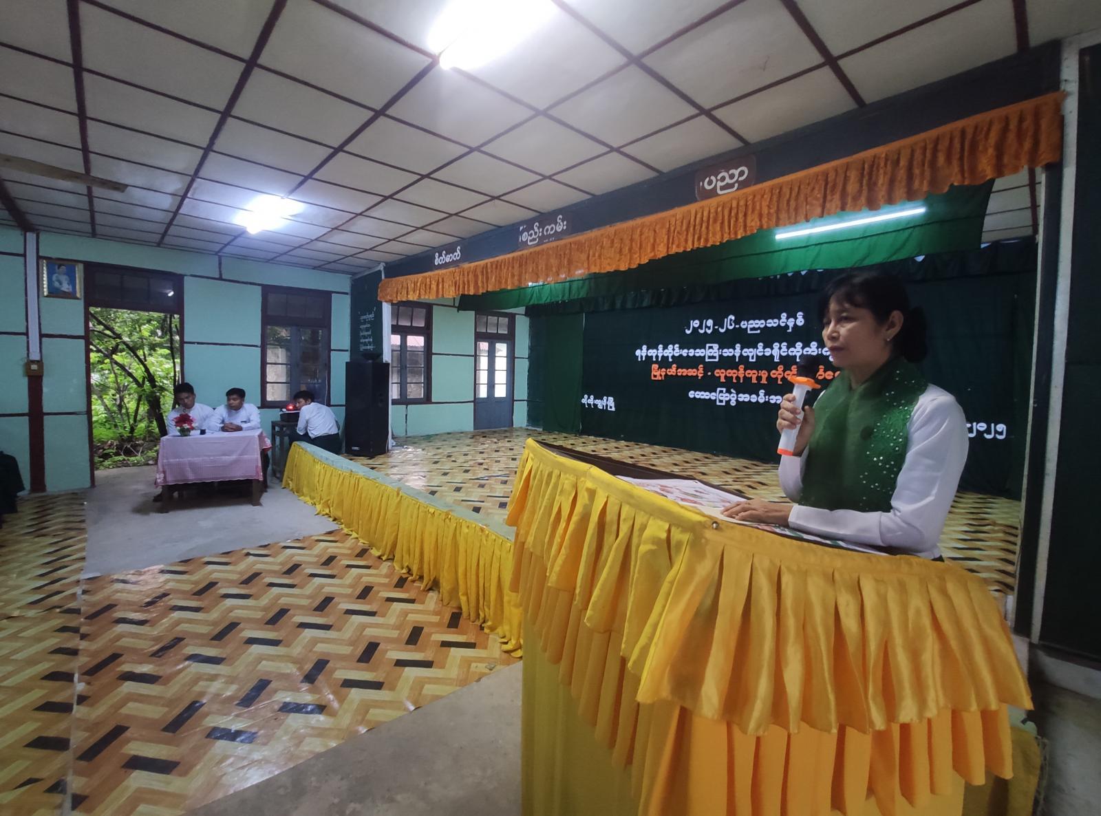 ရှေးဦးစွာ မြို့နယ်ပညာရေးမှူး ဒေါ်ခင်အေးနိုင်မှအဖွင့်မှာ စကားပြောကြားပြီး မြို့နယ်ပြန်ကြားရေးနှင့်ပြည်သူ့ဆက်ဆံရေးဦးစီးဌာနမှ ဦးစီးအရာရှိ ဦးထွန်းထွန်းဇော်မှ ဟောပြောပွဲပြု လုပ်ရခြင်း၏ ရည်ရွယ်ချက်များကို ရှင်းလင်းပြောကြားခဲ့ကြောင်း သိရသည်။
