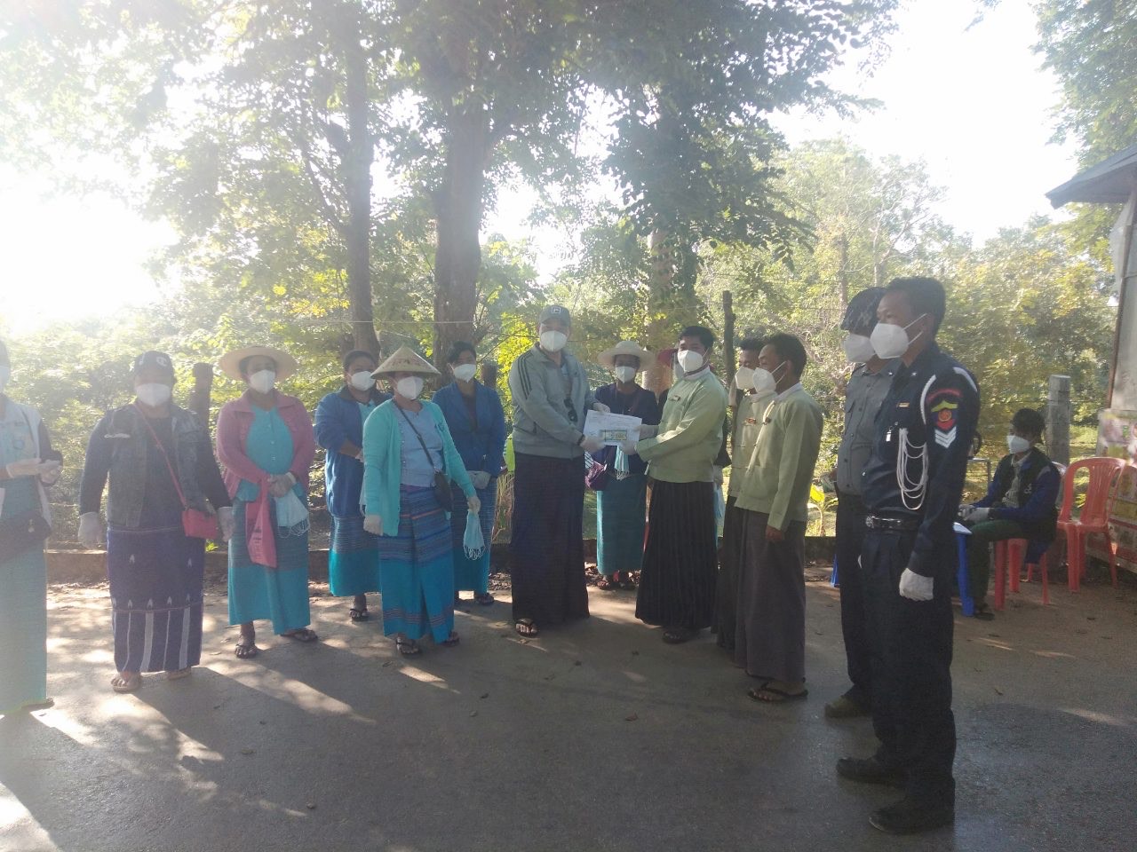 အဆိုပါလှူဒါန်းခြင်းအား မြို့နယ်အဆင့် ကိုဗစ်-၁၉ ရောဂါ ကာကွယ်၊ထိန်းချုပ်၊ ကုသရေးကော်မတီ ဥက္ကဋ္ဌ၏ ကြီးကြပ်မှုဖြင့် အထွေထွေ အုပ်ချုပ်ရေး ဦးစီးဌာန၊ မြို့နယ်ဒုတိယဦးစီးမှူး ဦးခင်မောင်စိုး နှင့် ဝန်ထမ်းများ၊ ဒုရဲအုပ် စောနိုင်ဦး နှင့် တပ်ဖွဲ့ဝင်များ၊ တပ်ကြပ်ကြီး ရဲမင်းဌေး နှင့် မီးသတ်တပ်ဖွဲ့ဝင်များ၊ စည်ပင်သာယာရေးဌာန အမှုဆောင်အရာရှိ ဦးကျော်မင်းထွန်း နှင့် ဝန်ထမ်းများ၊ စေတနာ့ဝန်ထမ်း အဖွဲ့ခေါင်းဆောင် ဦးသိန်းလင်းအောင်နှင့် အဖွဲ့ဝင်များမှ ပူးပေါင်းဆောင်ရွက်ခဲ့ကြောင်း သိရှိရသည်။