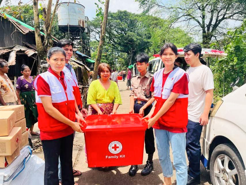 ထိုသို့ ထိခိုက်ခံစားရသည့် အိမ်ထောင်စု(၅၇)စုအတွက် မြန်မာနိုင်ငံကြက်ခြေနီအသင်းက ကြီးမှူး၍ ထောက်ပံ့ကူညီသော ပစ္စည်းများဖြစ်သည့် တကိုယ်ရည်သန့်ရှင်းရေးသုံးပစ္စည်း(၄၉)စုံ၊ တာပေါ်လင်(၉၈)ချပ်၊ မိသားစုသုံးပစ္စည်း(၈)စုံတို့ကို ဗိုလ်တထောင်မြို့နယ် ကြက်ခြေနီအသင်းခွဲမှ ကြက်ခြေနီစေတနာလုပ်အားရှင်များက ဇူလိုင်လ(၃၁)ရက်နေ့တွင် သွားရောက်ထောက်ပံ့ခဲ့ကြောင်း သိရသည်။