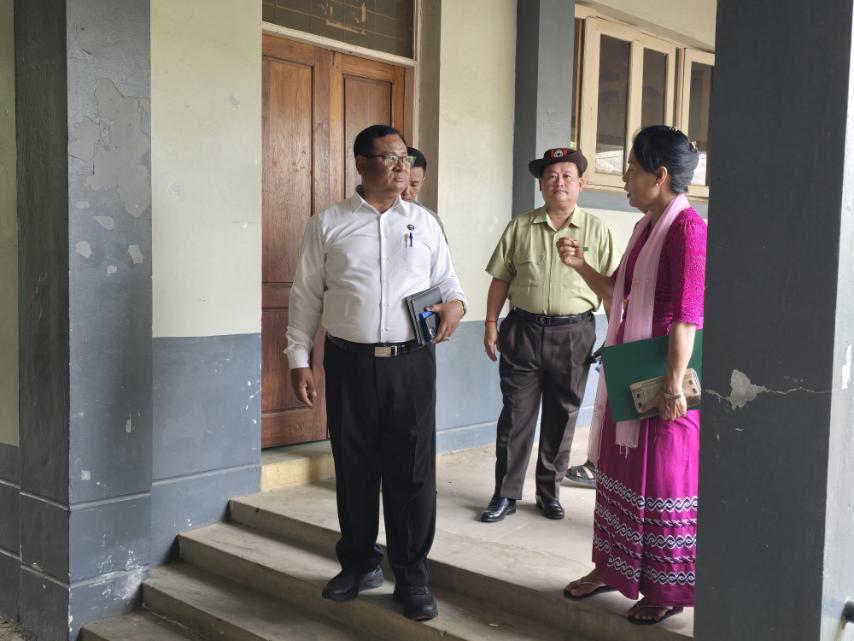 မန္တလေးတိုင်းဒေသကြီး လူမှုရေးရာဝန်ကြီး ဦးအောင်ကျော်မိုးနှင့် အဖွဲ့သည် ဩဂုတ် ၄ ရက် နံနက်ပိုင်းက မန္တလေးငလျင်ကြီးကြောင့် ကျောက်ဆည်ခရိုင် စဉ့်ကိုင်မြို့နယ် ကျောက်ဆည် တက္ကသိုလ်အတွင်းရှိ အဆောက်အအုံများ ထိခိုက်ပျက်စီးမှုနှင့် ပြန်လည်ပြုပြင် ဆောင်ရွက်နေမှုကို ကွင်းဆင်းကြည့်ရှုစစ်ဆေးသည်။