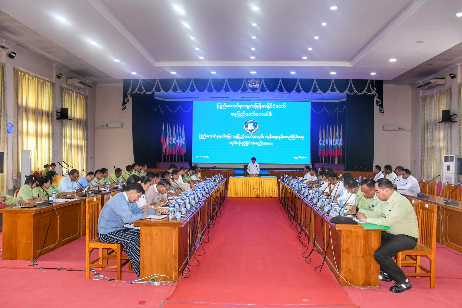 ဦးစွာ နေပြည်တော်ကောင်စီဥက္ကဋ္ဌ ဦးသန်းထွန်းဦးက အမှာစကားပြောကြားရာတွင် စားရေရိက္ခာ ဖူလုံစေရေးအတွက် အခြေခံစားသောက်ကုန်များဖြစ်သည့် ဆန်၊ ဆီနှင့် အသားငါးများကို ဒေသတွင်း တိုးချဲ့စိုက်ပျိုးထုတ်လုပ်နိုင်ရေး၊ စိုက်ပျိုးရေး၊ မွေးမြူရေး ထွက်ကုန်များ၏ အထွက်နှုန်းများ တိုးတက်လာမှသာ စားသောက်ကုန်ဈေးနှုန်းများကို ထိန်းသိမ်းနိုင်မှာဖြစ်ကြောင်း၊ စားသုံးဆီ ဖူလုံစေရေးအတွက် ဆီထွက်သီးနှံများကို ပိုမိုတိုးချဲ့စိုက်ပျိုးရန်လိုကြောင်း၊ ကုန်ဈေးနှုန်း တည်ငြိမ်ရေးအတွက် ကုန်စည်စီးဆင်းမှု မှန်ကန်မြန်ဆန်စေရေး ဆောင်ရွက်ရန်နှင့် တရားမဝင်ကုန်သွယ်မှု မရှိစေရေး စစ်ဆေးကြပ်မတ်ဆောင်ရွက်ရန်လိုကြောင်း၊ ကုန်ဈေးနှုန်း တည်ငြိမ်ရေးအတွက် သက်ဆိုင်ရာ အသင်းအဖွဲ့များမှလည်း ပေါင်းစပ်ညှိနှိုင်း ဆောင်ရွက်ပေးစေလိုကြောင်း၊ ဒေသအတွင်း ထုတ်ကုန်များ တိုးမြှင့်ထုတ်လုပ်နိုင်ရေးနှင့်လုံလောက်စွာ ဖြန်ဖြူးရောင်းချနိုင်ရေးအတွက် သက်ဆိုင်ရာတာဝန်ရှိသူများမှ ဝိုင်းဝန်းကြိုးပမ်းဆောင်ရွက် ရန်လိုကြောင်း ပြောကြားသည်။