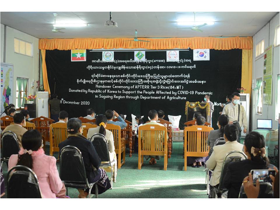 “ကိုဗစ်- ၁၉ ရောဂါ ဖြစ်ပွားနေတဲ့ ကာလအတွင်းမှာ အခက်အခဲဖြစ်နေတဲ့ စစ်ကိုင်းတိုင်း ဒေသကြီး အတွင်းက မိသားစု (၈၅၂၈) စုကို အကျိုးရှိစေမဲ့ ဆန်တန်ချိန် (၈၄) ကို ထောက်ပံ့ လှူဒါန်းတာ ဖြစ်ပါတယ်၊ လှူဒါန်းတဲ့အခါမှာ အာဆီယံ+၃ မှာပါတဲ့ အဖွဲ့ဝင် ကိုရီးယား သမ္မတနိုင်ငံကနေ ကျွန်တော်တို့ စစ်ကိုင်းတိုင်းဒေသကြီးကို ပေးလှူခဲ့တာ ဖြစ်ပါတယ် ”ဟု စစ်ကိုင်းတိုင်းဒေသကြီး စိုက်ပျိုးရေးဦးစီးဌာနမှ တိုင်းဒေသကြီးဦးစီးမှူး ဦးဝင်းလှိုင်ဦးက ပြောသည်။