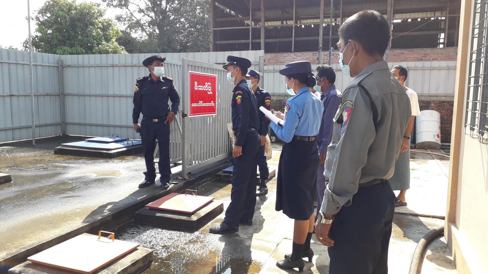 ထိုသို့ စစ်ဆေးရာတွင်မြို့နယ် အထွေထွေအုပ်ချုပ်ရေး ဦးစီးဌာန ဒုတိယဦးစီးမှူး ဦးကျော်ဖြိုးလင်း၊ မြို့နယ်မီးသတ် ဦးစီးဌာန ဦးစီးအရာရှိ ဦးအောင်ကျော်ထွေးနှင့် မီးသတ်တပ်ဖွဲ့ဝင်များ၊ မြို့နယ် လျှပ်စစ် အင်ဂျင်နီယာရုံး မှ တာဝန်ရှိ သူများနှင့် မြို့နယ် ပြန်/ဆက် ဦးစီးမှူးတို့က မီးဘေး အန္တရာယ် ကြိုတင်ကာကွယ်နိုင်ရေးအတွက် မြို့နယ်အတွင်းရှိ စက်သုံးဆီ အရောင်းဆိုင်များအား ဆီသိုလှောင်ကန်များထားရှိမှု အခြေအနေ၊ ယာဉ်များအား ဆီဖြည့်စဉ် လိုက်နာရမည့် အချက်များအား ကြည့်ရှု့စစ်ဆေးပြီး လိုအပ်သည်များကို ရှင်းလင်းအသိပေး ပြောကြား ကြောင်း သိရသည်။