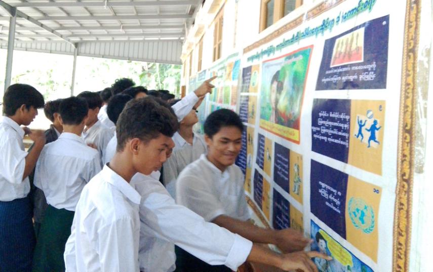 ထို့နောက် ခရိုင်ပြန်ကြားရေးနှင့်ပြည်သူ့ဆက်ဆံရေးဦးစီးဌာနမှ အသိပညာပေးနံရံကပ်စာစောင်များနှင့် သုတရသစာအုပ်စာစောင်များကို ပြသခဲ့ပြီး ရေဘေးအန္တရာယ်ကာကွယ်ရေးဦးစီးဌာနမှ အသိပညာပေး လက်ကမ်းစာစောင်များကို ဖြန့်ဝေခဲ့ကြကြောင်း သိရသည်။