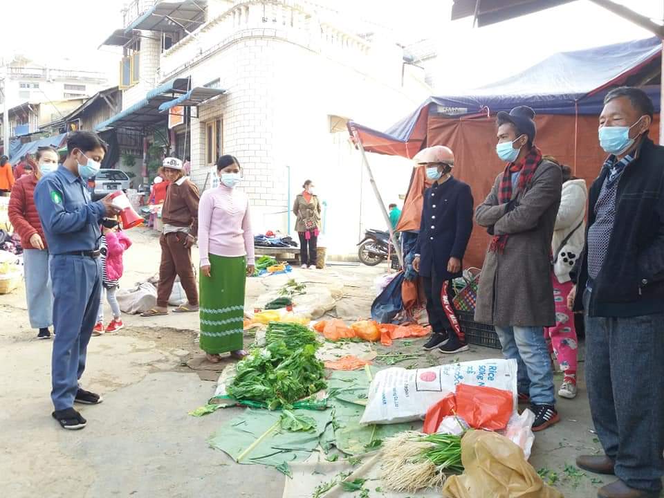 ရှမ်းပြည်နယ်(မြောက်ပိုင်း)၊ ကွမ်းလုံမြို့နယ် မြို့မစျေးအတွင်း စျေးရောင်းစျေးဝယ်များ ကိုဗစ်-၁၉ ရောဂါ ကာကွယ်တာဆီးရေး အတွက် နှာခေါင်းစည်း Mask တပ်ဆင်၍ စျေးရောင်း စျေးဝယ်ပြုလုပ်နိုင်ရေး ကွင်းဆင်းစစ်ဆေးခြင်းနှင့် အသိပညာပေးခြင်းကို ယနေ့ နံနက် ၈ နာရီအချိန်ခန့်က ဆောင်ရွက်ခဲ့သည်။