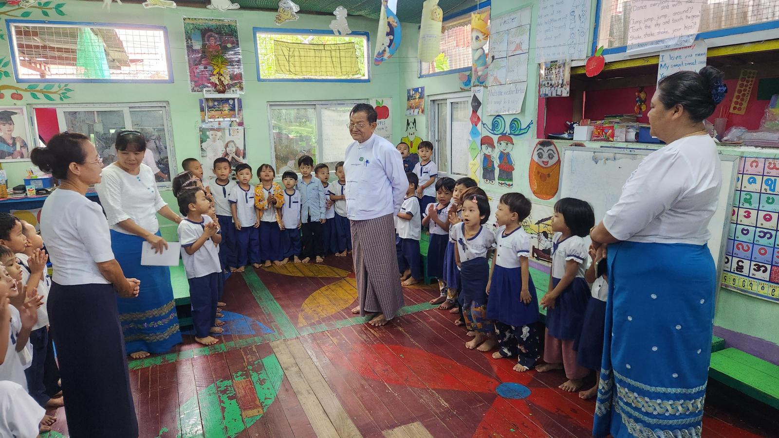 နေပြည်တော်ကောင်စီဝင် ဦးမြင့်စိုးသည် တာဝန်ရှိသူများနှင့်အတူ ယမန်နေ့ မွန်းလွဲပိုင်းတွင် ပျဉ်းမနားမြို့နယ်အတွင်းရှိ အပြုံးပန်းမူကြိုကျောင်း၊ မိုးရင်ခွင်မူလတန်းကြိုကျောင်းနှင့် လယ်ဝေးမြို့နယ်အတွင်းရှိ WEE KIDS မူကြိုစသည့် မူလတန်းကြိုကျောင်းများ တည်ထောင်ခွင့်ပြုမိန့် ဒုတိယအကြိမ်သက်တမ်းတိုးမြှင့်ခွင့်ရရှိနိုင်ရေး ကွင်းဆင်းကြည့်ရှုစစ်ဆေးသည်။
