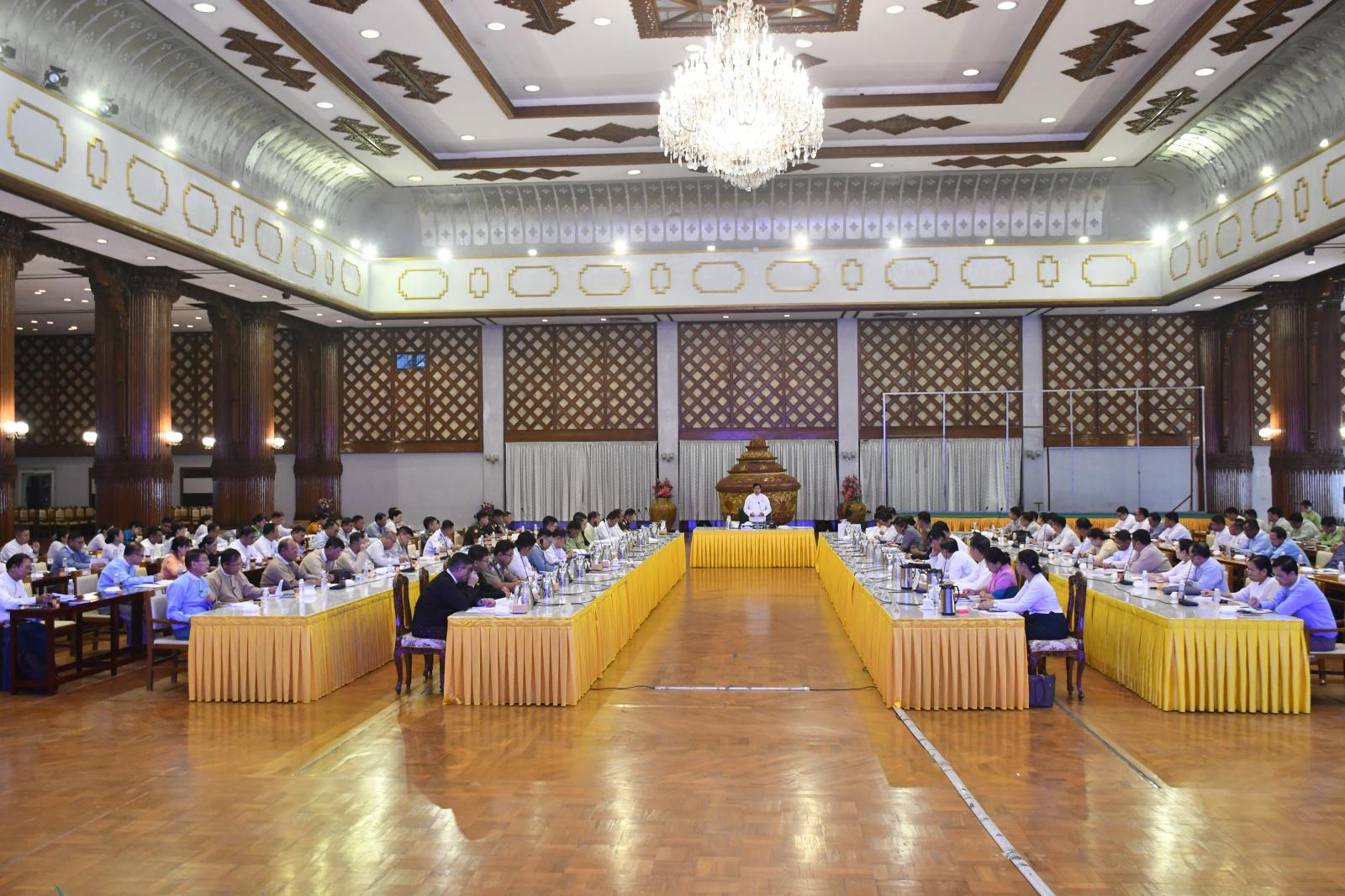 ၎င်းနောက် ရန်ကုန်တိုင်းဒေသကြီးအစိုးရအဖွဲ့ အတွင်းရေးမှူး ဦးခင်မောင်ဆန်းက အမျိုးသားကာကွယ်ရေးနှင့်လုံခြုံရေးကောင်စီမှ ထုတ်ပြန်သော ဦးတည်ချက်(၄)ရပ်၊ အမိန့်၊ လမ်းညွှန်ချက်များ၊ ညွှန်ကြားချက်များအား ဖတ်ကြားရှင်းလင်းတင်ပြပြီး တိုင်းဒေသကြီး စီမံကိန်းရေးဆွဲရေးဦးစီးဌာနမှ တာဝန်ရှိသူက လုပ်ငန်းအခြေအနေများအား ဖတ်ကြားရှင်းလင်းတင်ပြသည်။
