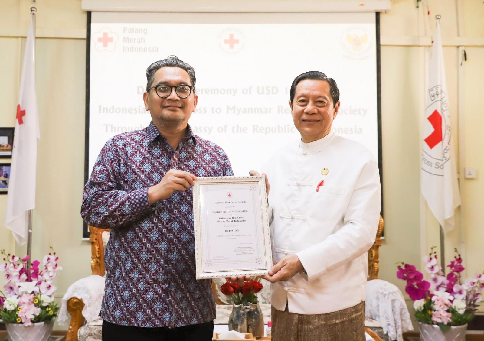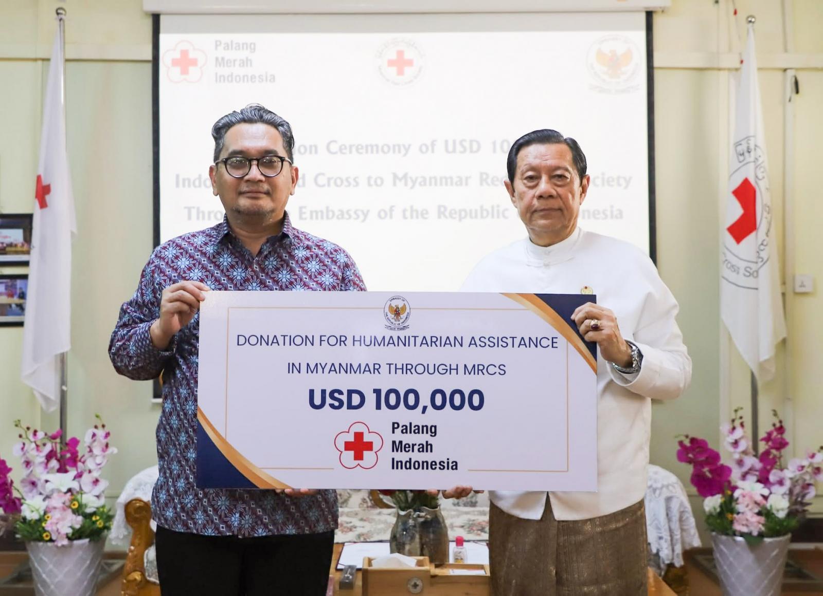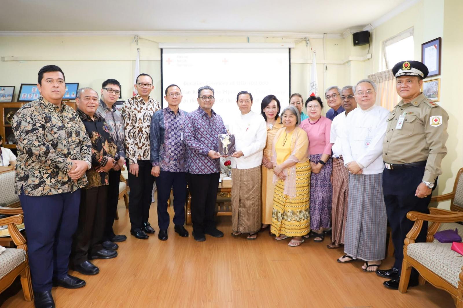 မြန်မာနိုင်ငံကြက်ခြေနီအသင်းက ဆောင်ရွက်လျက်ရှိသော လူမှုကရုဏာလုပ်ငန်းများတွင် အသုံးပြုရန်အတွက် အင်ဒိုနီးရှားနိုင်ငံသံရုံးမှတဆင့် အင်ဒိုနီးရှားနိုင်ငံကြက်ခြေနီအသင်း(PMI) မှလှူဒါန်းသည့် အလှူငွေလှူဒါန်းပွဲကို ယမန်နေ့ နံနက်ပိုင်းက အသင်းရန်ကုန်ရုံးခွဲတွင် ကျင်းပခဲ့သည်။