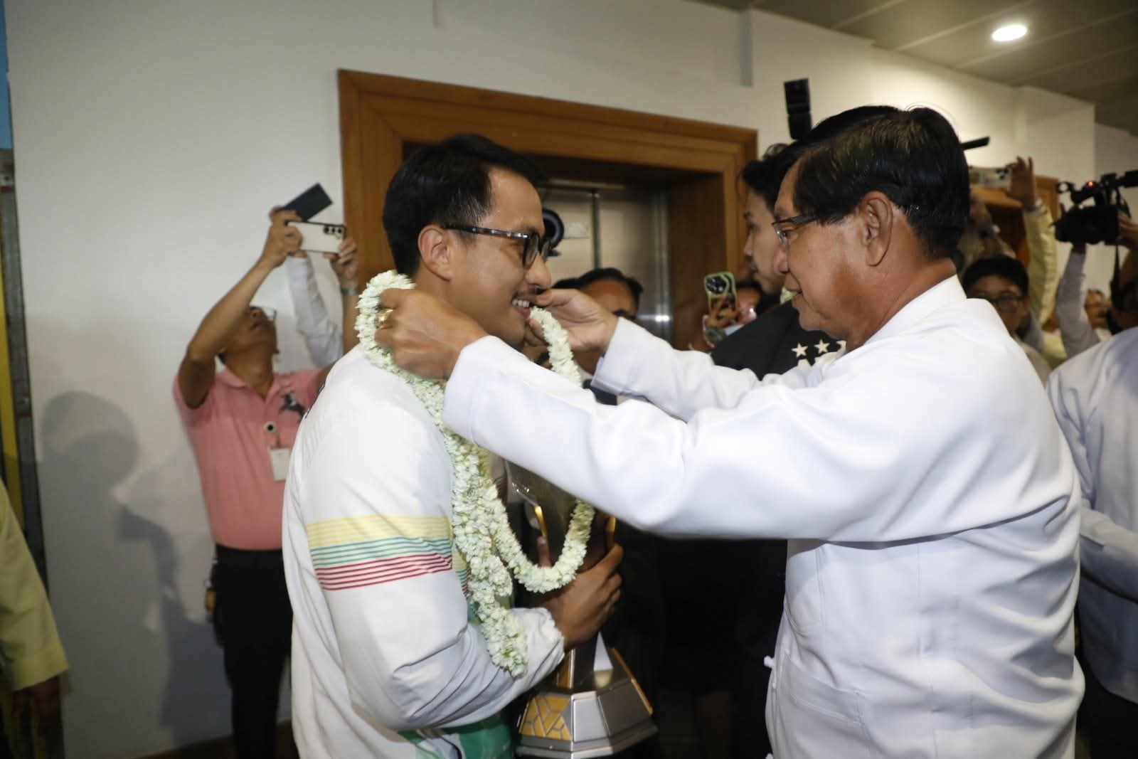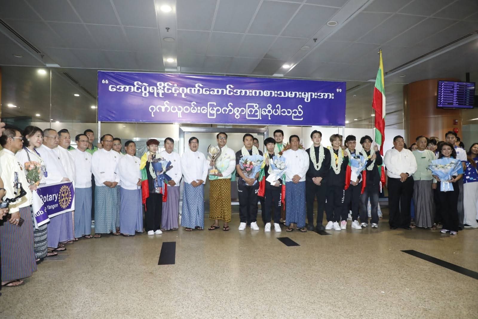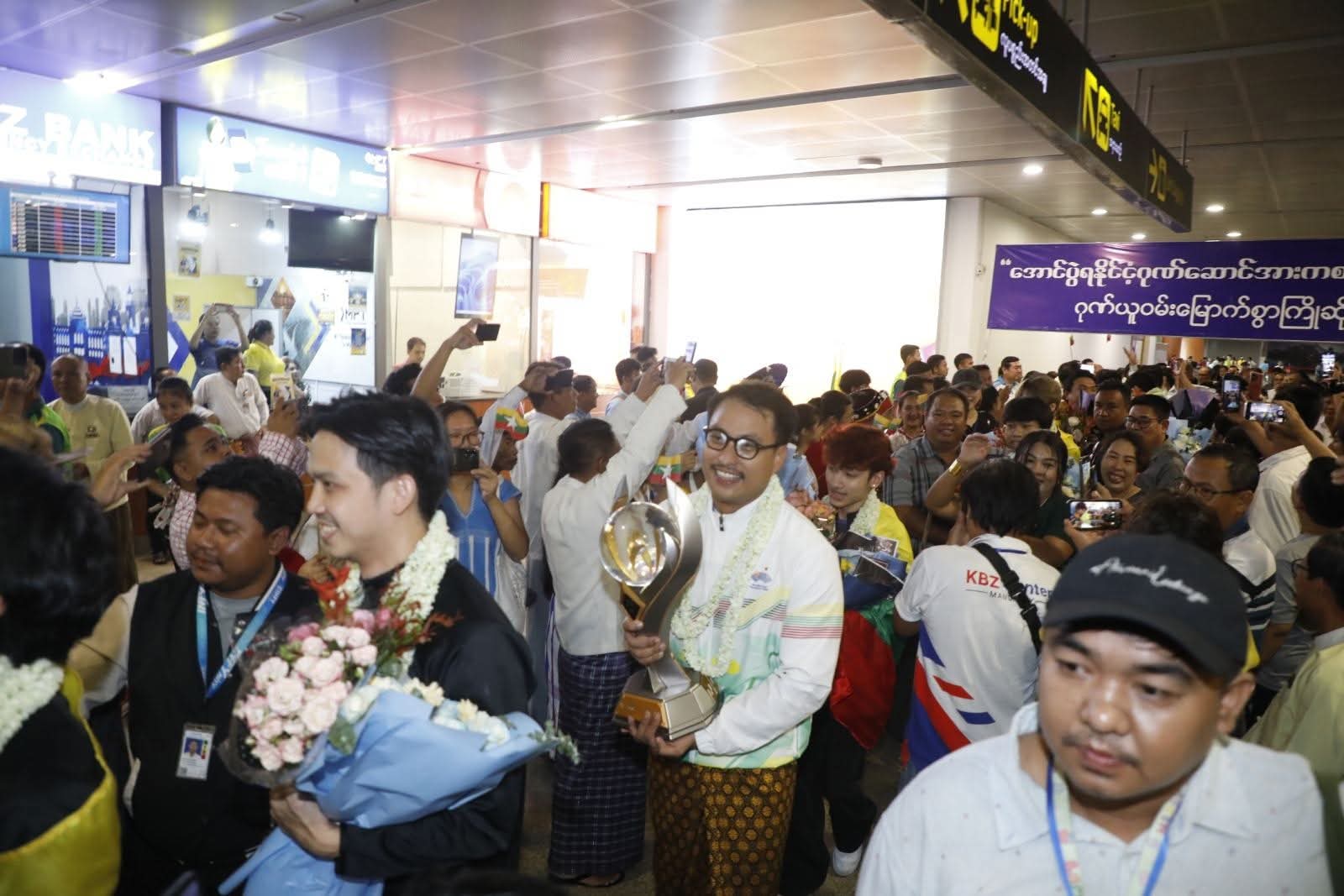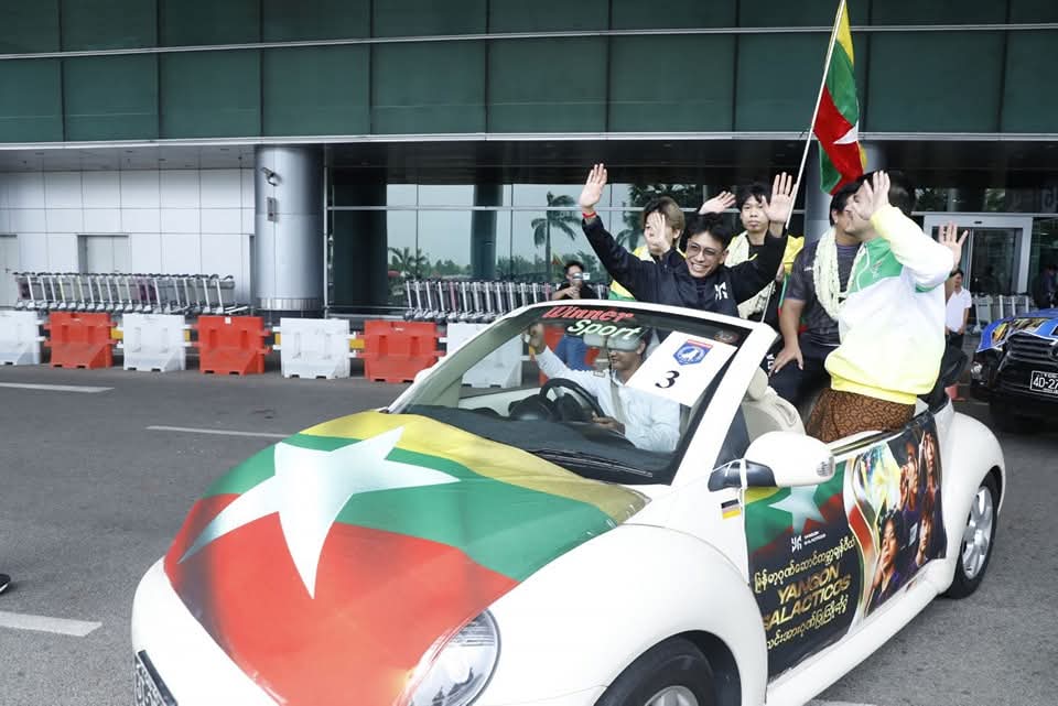 ဆော်ဒီအာရေဗျနိုင်ငံ၊ ရီယာဒ့်မြို့တွင် ဇူလိုင်(၂၅)ရက်နေ့မှ ဩဂုတ်(၃)ရက်နေ့အထိ ကျင်းပပြုလုပ်ခဲ့သည့် ကမ္ဘာ့အဆင့် Esports World Cup ပြိုင်ပွဲ၏ PUBG Mobile အားကစားနည်းတွင် မြန်မာနိုင်ငံကိုယ်စားပြု YG (Yangon Galacticos) အသင်းမှ အုပ်ချုပ်သူ/နည်းပြ အားကစားသမားစုစုပေါင်းအဖွဲ့ဝင်(၈)ဦး သွားရောက်ယှဉ်ပြိုင်ခဲ့ရာ ချန်ပီယံဆုဖလားဆွတ်ခူးရရှိခဲ့ပြီး ယမန်နေ့ နံနက်(၁၁)နာရီ (၃၀)မိနစ်အချိန်က ရန်ကုန်အပြည်ပြည်ဆိုင်ရာ လေဆိပ်သို့ ပြန်လည်ရောက်ရှိရာ ရန်ကုန်တိုင်းဒေသကြီးအစိုးရအဖွဲ့ဝန်ကြီးချုပ် ဦးစိုးသိန်းနှင့် အစိုးရအဖွဲ့ဝင်ဝန်ကြီးများ၊ ရန်ကုန်တိုင်းဒေသကြီး ဗုဒ္ဓဘာသာကလျာဏယုဝအသင်း(ဗဟို)ဥက္ကဋ္ဌ၊ မြန်မာနိုင်ငံအီလက်ထရောနစ် အားကစားအဖွဲ့ချုပ်နာယက ဦးရဲထွန်းနှင့် ဗဟိုအလုပ်အမှုဆောင်များ၊ အားကစားနှင့်လူငယ်ရေးရာဝန်ကြီးဌာန၊ အားကစားနှင့်ကာယပညာဦးစီးဌာနမှ ဒုတိယညွှန်ကြားရေးမှူးချုပ်၊ ညွှန်ကြားရေးမှူးများနှင့် တာဝန်ရှိပုဂ္ဂိုလ်များ၊ မြန်မာနိုင်ငံ E sports အဖွဲ့ချုပ်ဥက္ကဋ္ဌ၊ ဒုတိယဥက္ကဋ္ဌနှင့် အဖွဲ့ချုပ်မှ တာဝန်ရှိသူများ၊ မိဘဆွေမျိုးမိတ်သင်္ဂဟများ၊ ရန်ကုန်တိုင်းဒေသကြီး အားကစားအောင်နိုင်ရေး အထောက်အကူပြုအဖွဲ့ဝင်များ၊ အားကစားနှင့်ကာယပညာသိပ္ပံ (ရန်ကုန်) မှ ကျောင်းသား / ကျောင်းသူများနှင့် အားကစားဝါသနာရှင်ပရိသတ်များက အိုးစည်ဒိုးပတ်များဖြင့် သောင်းသောင်းဖြဖြကြိုဆိုခဲ့ကြသည်။