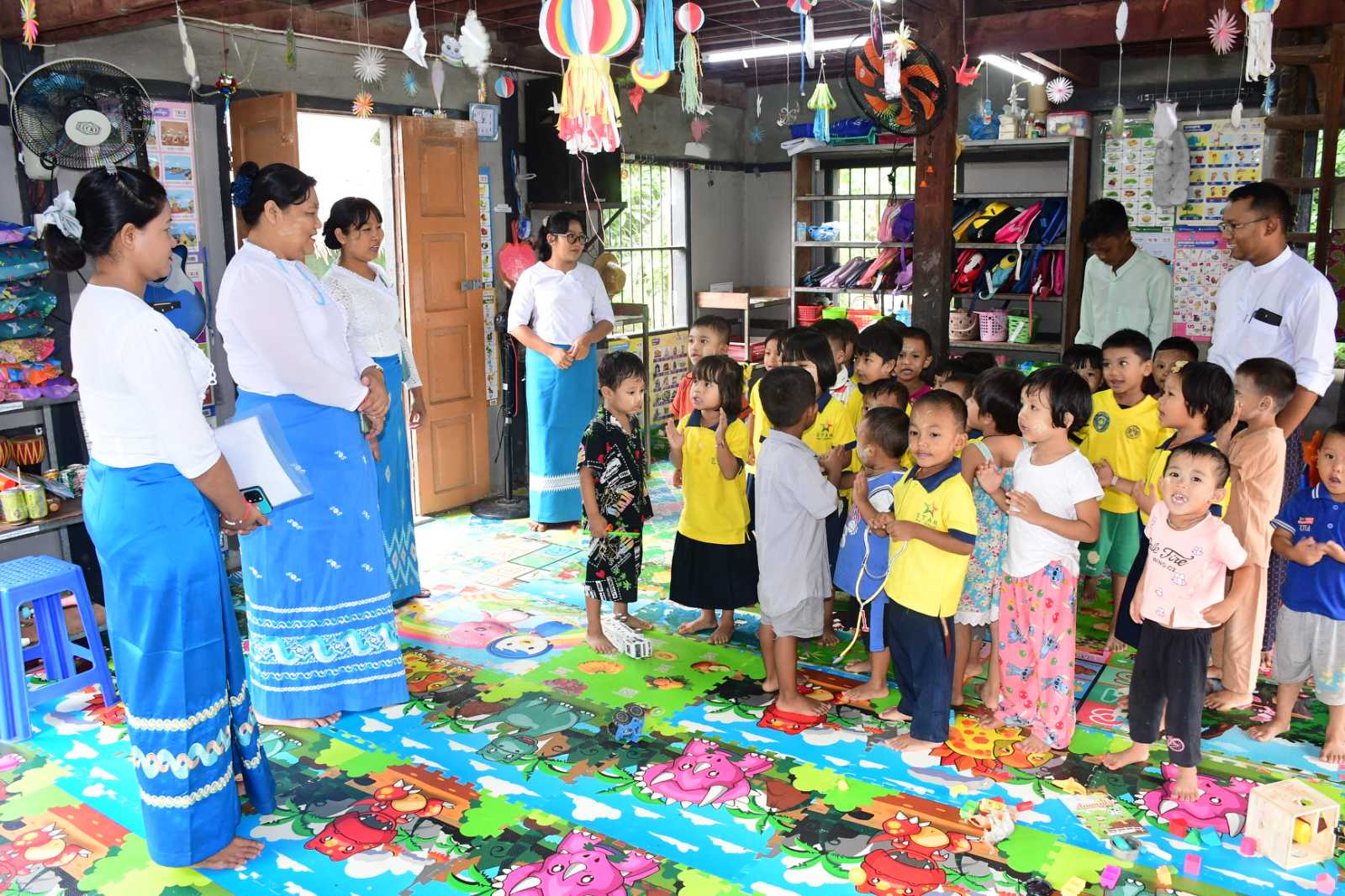 ပြည်ထောင်စုနယ်မြေ၊ နေပြည်တော်အတွင်း မူလတန်းကြိုကျောင်းများ ထူထောင်ခွင့်ပြုမိန့်ရရှိရေး ကွင်းဆင်းစစ်ဆေးခြင်းကို ယနေ့နံနက်ပိုင်းတွင် လူမှုဝန်ထမ်းဦးစီးဌာန ညွှန်ကြားရေးမှူး ဒေါ်ဥမ္မာဆွေနှင့်တာဝန်ရှိသူများ၊ ECCD. Early Childhood Car & Development ရှေးဦးအရွယ် ကလေးသူငယ်ပြုစုပျိုးထောင်ရေးနှင့် ဖွံ့ဖြိုးရေးလုပ်ငန်းကော်မတီဝင်များ၊ ဌာနဆိုင်ရာ တာဝန်ရှိသူများနှင့်အတူ ပုဗ္ဗသီရိမြို့နယ်အတွင်းရှိ MOE MYINT (မိုးမြင့်)မူကြိုကျောင်း၊ ဒက္ခိဏသီရိမြို့နယ်အတွင်းရှိ KIDS ZONE Child Development Centre (ရင်သွေးငယ်များရပ်ဝန်း) မူလတန်းကြိုကျောင်းနှင့် လယ်ဝေးမြို့နယ်အတွင်းရှိ Star(စတား)မူကြိုစသည့် မူလတန်းကြိုကျောင်းများ တည်ထောင်ခွင့်ပြုမိန့် ရရှိနိုင်ရေး ကွင်းဆင်းကြည့်ရှုစစ်ဆေးသည်။
