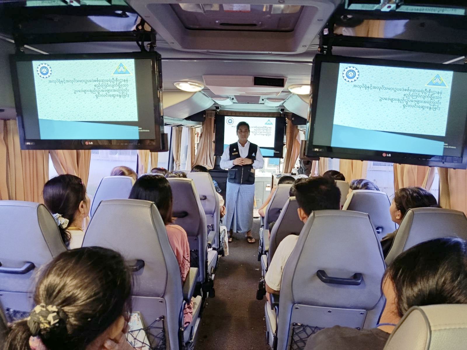 ရန်ကုန်တိုင်းဒေသကြီး၊ မင်္ဂလာဒုံမြို့နယ်၌ အလုပ်သမားဝန်ကြီးဌာန၊ အလုပ်ရုံနှင့် အလုပ်သမားဥပဒေ စစ်ဆေးရေးဦးစီးဌာနမှ သင်ထောက်ကူပြုမော်တော်ယာဉ်ဖြင့် လုပ်ငန်းခွင်အရောက် အလုပ်သမားဥပဒေပါရပိုင်ခွင့်များ၊ လုပ်ငန်းခွင် ဘေးအန္တရာယ်ကင်းရှင်းရေးနှင့် ကျန်းမာရေးဆိုင်ရာကိစ္စရပ်များ အသိပညာပေးဆွေးနွေးခြင်းကို မင်္ဂလာဒုံစက်မှုဇုန်၌ ယမန်နေ့ နံနက်ပိုင်းက ဆောင်ရွက်ခဲ့သည်။