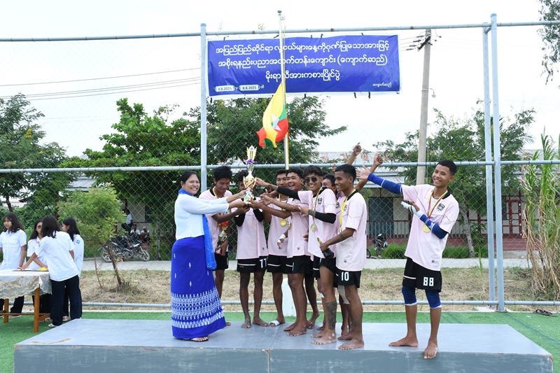 ပြိုင်ပွဲအပြီးတွင် ကျောက်ဆည်မြို့နယ် စီမံခန့်ခွဲရေးနှင့်အုပ်ချုပ်ရေးကော်မတီဥက္ကဋ္ဌ ဦးထိုက်ထိုက်ဇော်၊ အစိုးရနည်းပညာအထက်တန်းကျောင်း(ကျောက်ဆည်)မှ ကျောင်းအုပ်ဆရာမကြီး ဒေါက်တာဇာနည်ထွန်းနှင့် တာဝန်ရှိသူများ ဖူဆယ်ဘော်လုံးပြိုင်ပွဲ၌ ပထမရရှိသော စက်မှုပထမနှစ်သင်တန်း အသင်းအား ဆုဒိုင်းနှင့် ရွှေဆွဲပြားကိုလည်းကောင်း၊ ဒုတိယဆုရရှိခဲ့သော အဆောက်အဦပြုပြင်ထိန်းသိမ်းခြင်းနည်းပညာသင်တန်းအသင်းအား ဆုဒိုင်းနှင့် ငွေဆွဲပြားများကို လည်းကောင်း၊ ပြိုင်ပွဲတစ်လျှောက်အကောင်းဆုံးအားကစားသမားဆု၊ ဂိုးသွင်းအများဆုံးဆု၊ အသန့်ရှင်းဆုံးဆုများအပြင် ကြက်တောင်ရိုက်ပြိုင်ပွဲ၊ ထုပ်စည်းတိုးပြိုင်ပွဲ၊ ခြင်းလုံးပြိုင်ပွဲများတွင် ဆုရရှိသူများအား ဆုများချီးမြှင့်ပေးအပ်ခဲ့ပြီး စုပေါင်းမှတ်တမ်းဓာတ်ပုံများ ရိုက်ကူးခဲ့ကြောင်း သိရသည်။