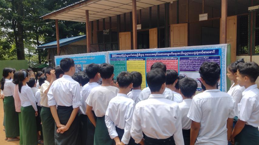 ဆက်လက်၍ ကျောင်သား/ ကျောင်းသူများအား ကလေးအလုပ်သမားပပျောက်ရေး အသိပညာပေးလက်ကမ်းစာစောင်များ ဖြန့်ဝေပေးခဲ့ပြီး သုတ/ရသစာအုပ်စာစောင်များ၊ အသိပညာပေးနံရံကပ်စာစောင်များ ပြသထားရာ ဆရာ/ဆရာမများ၊ ကျောင်းသား/ကျောင်းသူများ စိတ်ပါဝင်စားစွာ လေ့လာနေကြကြောင်း သိရသည်။