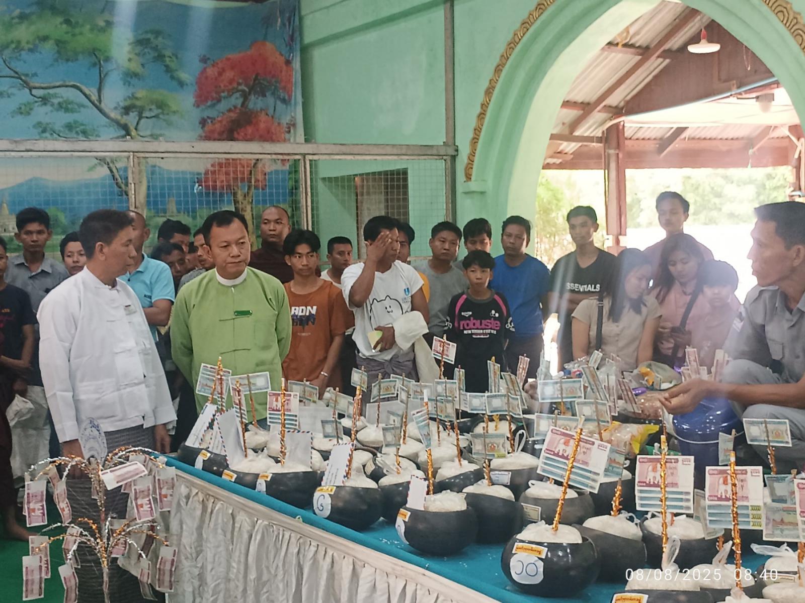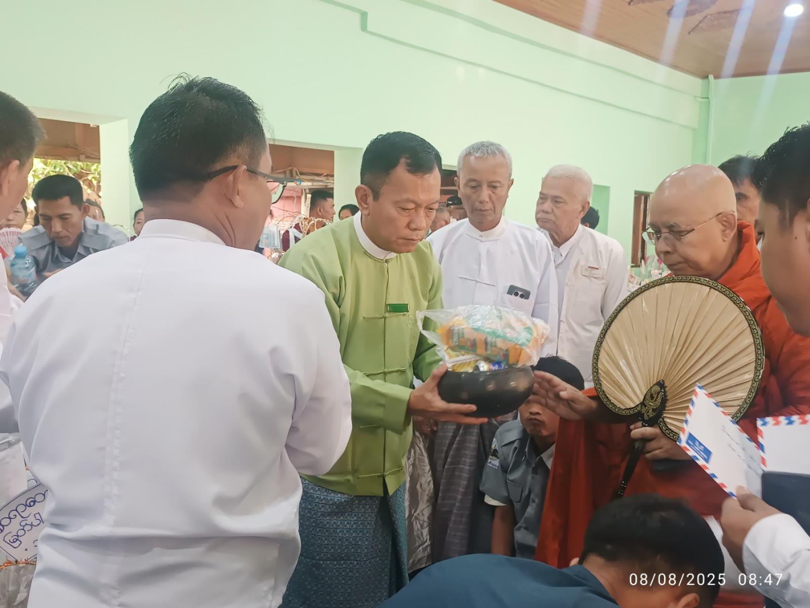 မြစေတီဗုဒ္ဓပူဇနိယပွဲတော်အား ဘုရားကြီးရင်ပြင်တော်ပေါ်၌ ပင့်သံဃာ (၅၉)ပါး တို့အား ဆွမ်းသပိတ်လုံးလောင်းလှူကြရာ ခရိုင်စီမံခန့်ခွဲရေးနှင့်အုပ်ချုပ်ရေးကော်မတီဥက္ကဋ္ဌ ဦးကျော်မင်းညိုနှင့် အဖွဲ့ဝင်များ၊ ခရိုင်သာသနာရေးမှူး ဦးနေလင်းသိန်း၊ မြို့နယ်စီမံခန့်ခွဲရေးနှင့်အုပ်ချုပ်ရေးကော်မတီဥက္ကဋ္ဌ ဦးဝင်းလှိုင်တင့်နှင့်အဖွဲ့ဝင်များ၊ ဂေါပကဥက္ကဋ္ဌနှင့်အဖွဲ့ဝင်များ၊ မြန်မာပြည်အရပ်ရပ်မှ ဘုရားဖူးလာရောက်သူများက ဆွမ်းသပိတ်လုံးတို့အား စာရေးတံမဲပြုလုပ် လောင်းလှူပူဇော်ခဲ့ကြောင်းသိရသည်။