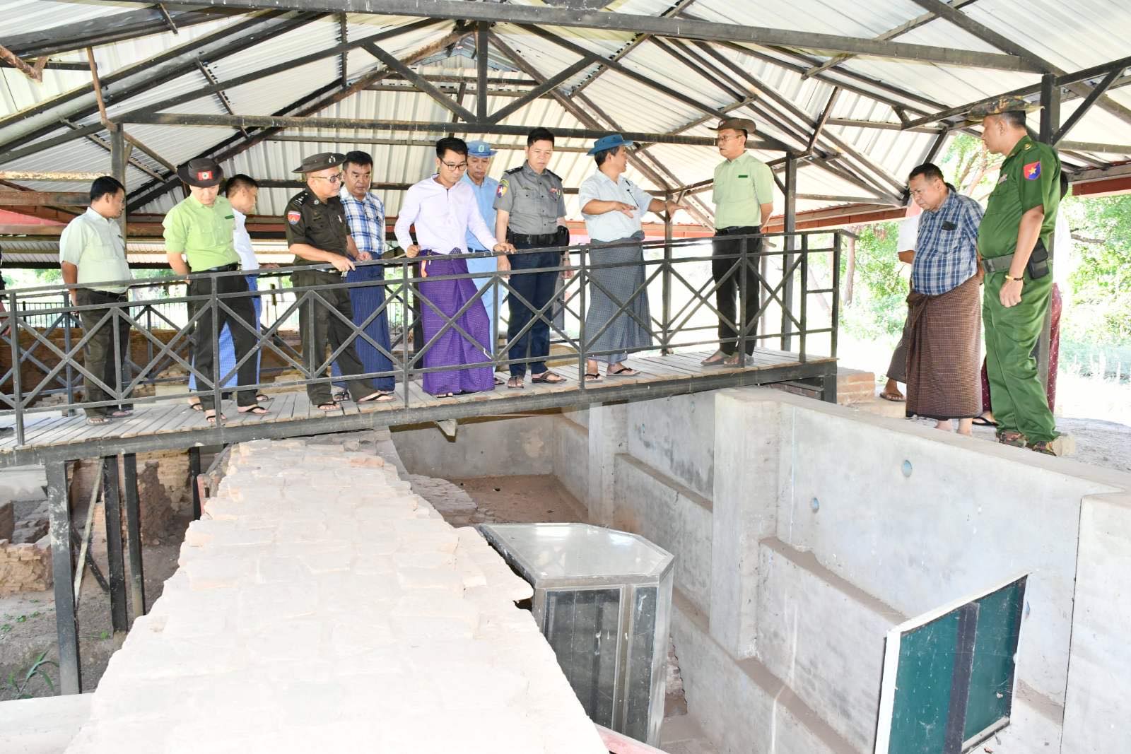 ညောင်ဦးခရိုင်စီမံခန့်ခွဲရေးနှင့်အုပ်ချုပ်ရေးကော်မတီဥက္ကဋ္ဌ ဦးကျော်မင်းညိုနှင့်ကော်မတီဝင်များ၊ ရှေးဟောင်းသုတေသနနှင့်အမျိုးသားပြတိုက်ဦးစီးဌာန (ပုဂံဌာနခွဲ)မှ ညွှန်ကြားရေးမှူး ဦးညီမွန်း၊ မြို့နယ်စီမံခန့်ခွဲရေးနှင့် အုပ်ချုပ်ရေးကော်မတီဥက္ကဋ္ဌ ဦးဝင်းလှိုင်တင့်၊ ဌာနဆိုင်ရာ တာဝန်ရှိသူတို့နှင့်အတူ အနော်ရထာမင်းတရားကြီးနှင့် ကျန်စစ်သားမင်းကြီးတို့၏ နန်းတော်ရာ တူးဖော်မှုအား ရှေးဟောင်းသုတေသနနှင့် အမျိုးသားပြတိုက်ဦးစီးဌာန(ပုဂံဌာနခွဲ)မှ သုတေသနပြု ထိန်းသိမ်းထားရှိမှုအား သွားရောက်ကြည့်ရှုစစ်ဆေးကြရာ သုတေသနပြုတွေ့ရှိချက်များ၏ အဆောက်အအုံအစိတ်အပိုင်းများ၊ မြေထည်အသုံးအဆောင်ပစ္စည်းများနှင့် စပ်လျဉ်း၍ ဖြစ်စဉ်သမိုင်း အကြောင်းအရာများအား ရှေးဟောင်းသုတေသနနှင့် အမျိုးသား ပြတိုက်ဦးစီးဌာန(ပုဂံဌာနခွဲ)မှ တာဝန်ရှိသူများက ရှင်းလင်းတင်ပြခဲ့သည်။