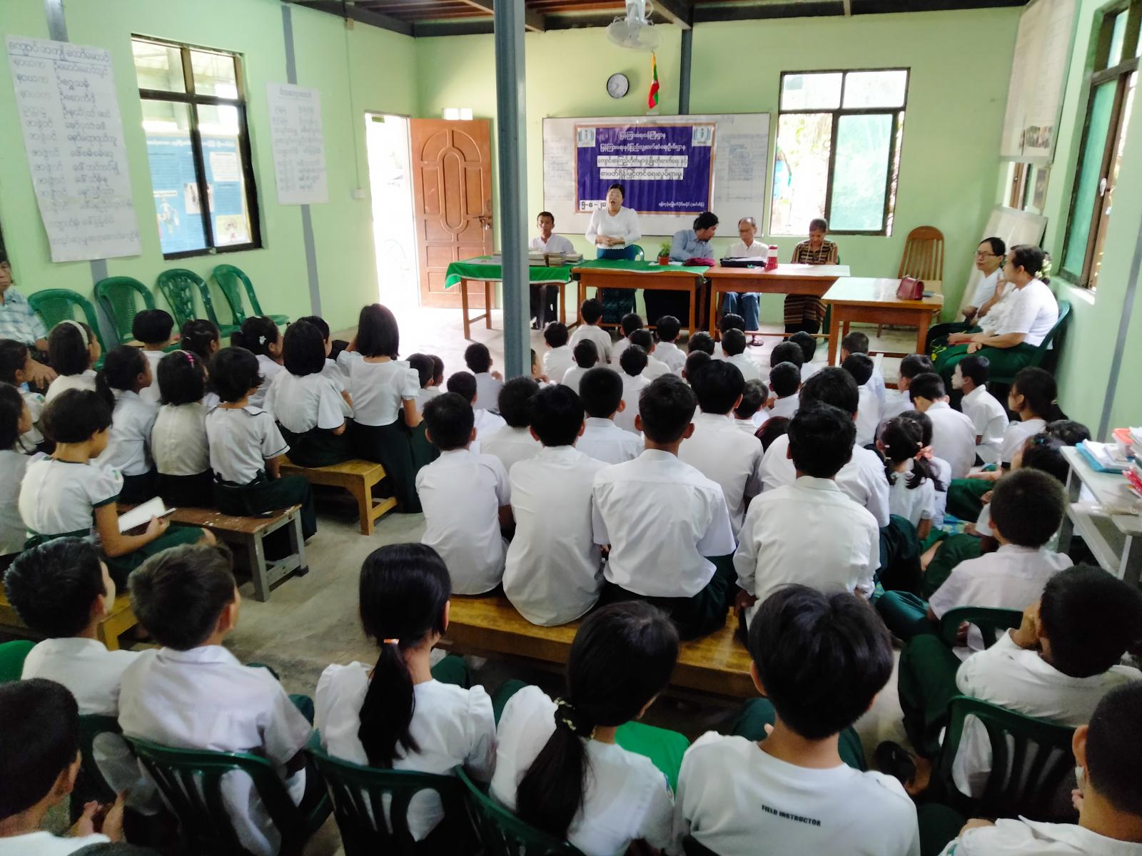 ထို့နောက် ကျောင်းသား၊ ကျောင်းသူများကို မြန်မာ့ရိုးရာချစ်စဖွယ်ပုံပြင်များစာအုပ်ကို ဖတ်ကြားစေပြီး ပြန်ကြားရေးနှင့်ပြည်သူ့ဆက်ဆံရေးဦးစီးဌာနမှ ခင်းကျင်းပြသထားသော ကလေးအလုပ်သမားပပျောက်ရေး ဝိုင်းဝန်းကူညီစောင့်ရှောက်ပေး နံရံကပ်စာစောင်၊ ယာဉ်စည်းကမ်း၊ လမ်းစည်းကမ်း အသိပညာပေးနံရံကပ်စာစောင်နှင့် အရွယ်မရောက်သေးသူ ကလေးသူငယ်များအား စစ်မှုထမ်းခြင်းမှ ကာကွယ်တားဆီးထိန်းသိမ်းရေး အသိပညာပေး နံရံကပ်စာစောင်များနှင့် သုတ၊ ရသ စာအုပ်စာစောင်များပြသခဲ့ပြီး ဉာဏစွမ်းရည်ပြိုင်ပွဲများဖြစ်သည့် စာဖတ်စွမ်းရည်ပြိုင်ပွဲ စကားပုံဆက်ပြိုင်ပွဲကိုလည်း ကျောင်းသား၊ ကျောင်းသူများက ပျော်ရွှင်စွာ ပါဝင်ကစားခဲ့ပြီ ရွေ့လျားစာကြည့်တိုက်မော်တော်ယာဉ်(Mobile Library Bus) ဖြင့် သုတ၊ ရသ စာအုပ်၊ စာစောင်များကိုလည်း စိတ်ပါဝင်စာစွာဖတ်ရှုခဲ့ကြကြောင်း သိရသည်။