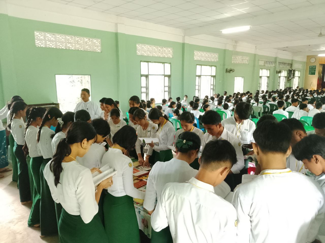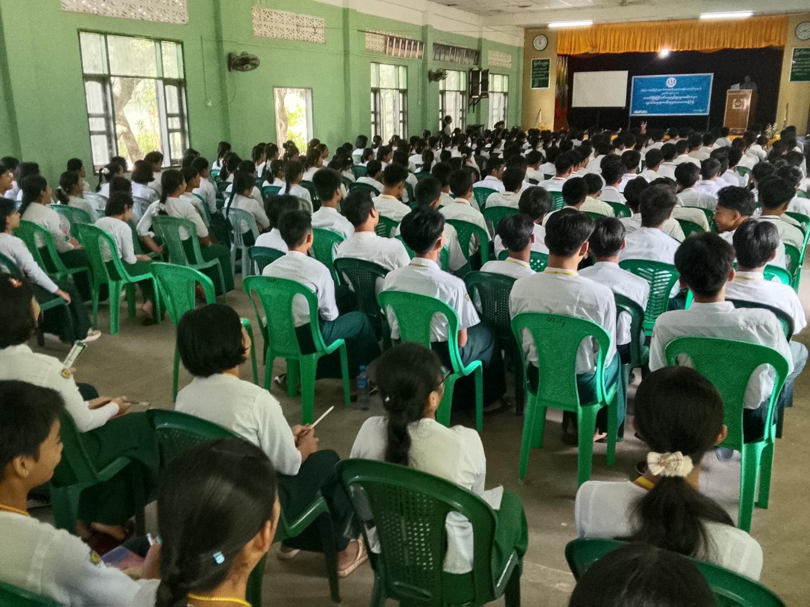ဆက်လက်၍ သပြေညိုပညာဒါနအကျိုးဆောင်အသင်းမှ အတွင်းရေးမှူး ဆရာဦးနေဆန်းက “လူငယ်နှင့်E-စီးကရက်အန္တရာယ်”၊ မြို့နယ်စာရေးဆရာအသင်းမှဥက္ကဋ္ဌ စာရေးဆရာ ငွေစိုး(ရွှေကြန့်မြေ)က “လူငယ်များနှင့် ရသခံစားမှုအနုပညာ”၊ မြို့နယ်စာကြည့်တိုက်ကြီးကြပ်မှုကော်မတီမှဥက္ကဋ္ဌ ဦးသီဟဘော်ဇံက “လူငယ်များနှင့် အင်တာနက်ပေါ်က သတင်းအမှားများ၏အန္တရာယ်” စသည့်ခေါင်းစဉ်များဖြင့် အသီးသီးဟောပြောခဲ့ပြီးနောက် စက်မှု၊ စိုက်ပျိုး၊ မွေးမြူရေးနှင့် အခြေခံပညာအထက်တန်းကျောင်းမှ Grade 12 ကျောင်းသား/ ကျောင်းသူများအား သိမှတ်စွမ်းရည်မေးမြန်းခြင်းပြုလုပ်ခဲ့ရာ ပါဝင်ဆွေးနွေးနိုင်သူများအတွက် ကျောင်းသုံးဗလာစာအုပ်များနှင့် စာရေးကိရိယာများကိုတာဝန်ရှိသူများက ဆုချီးမြှင့်ပေးကြသည်။