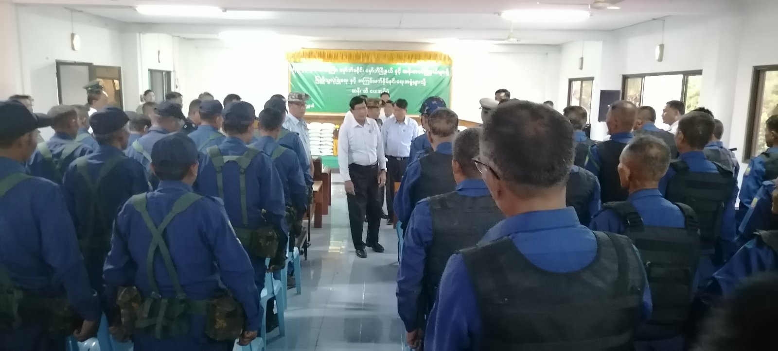 ရန်ကုန်တိုင်းဒေသကြီး၊ မှော်ဘီခရိုင်၊ မှော်ဘီမြို့နယ်တွင် ပြည်သူ့လုံခြုံရေးအဖွဲ့ဝင်များသို့ ဆန်နှင့်ဆီများပေးအပ်ပွဲအခမ်းအနားကို ဩဂုတ် ၉ ရက် ညနေ ၅နာရီခွဲက မြန်မာ့ဆန်စပါးသုတေသနခန်းမ၌ ကျင်းပခဲ့သည်။