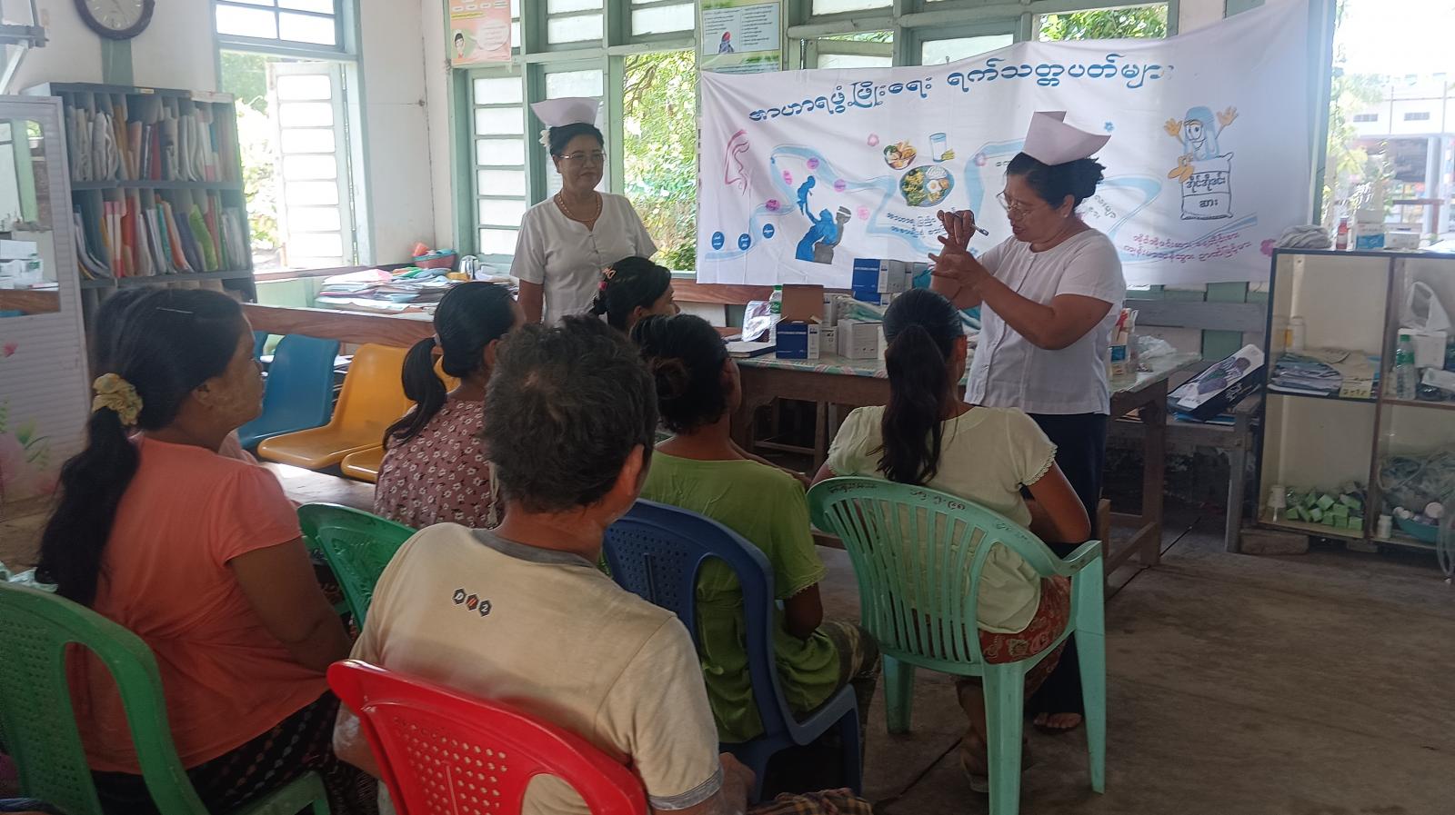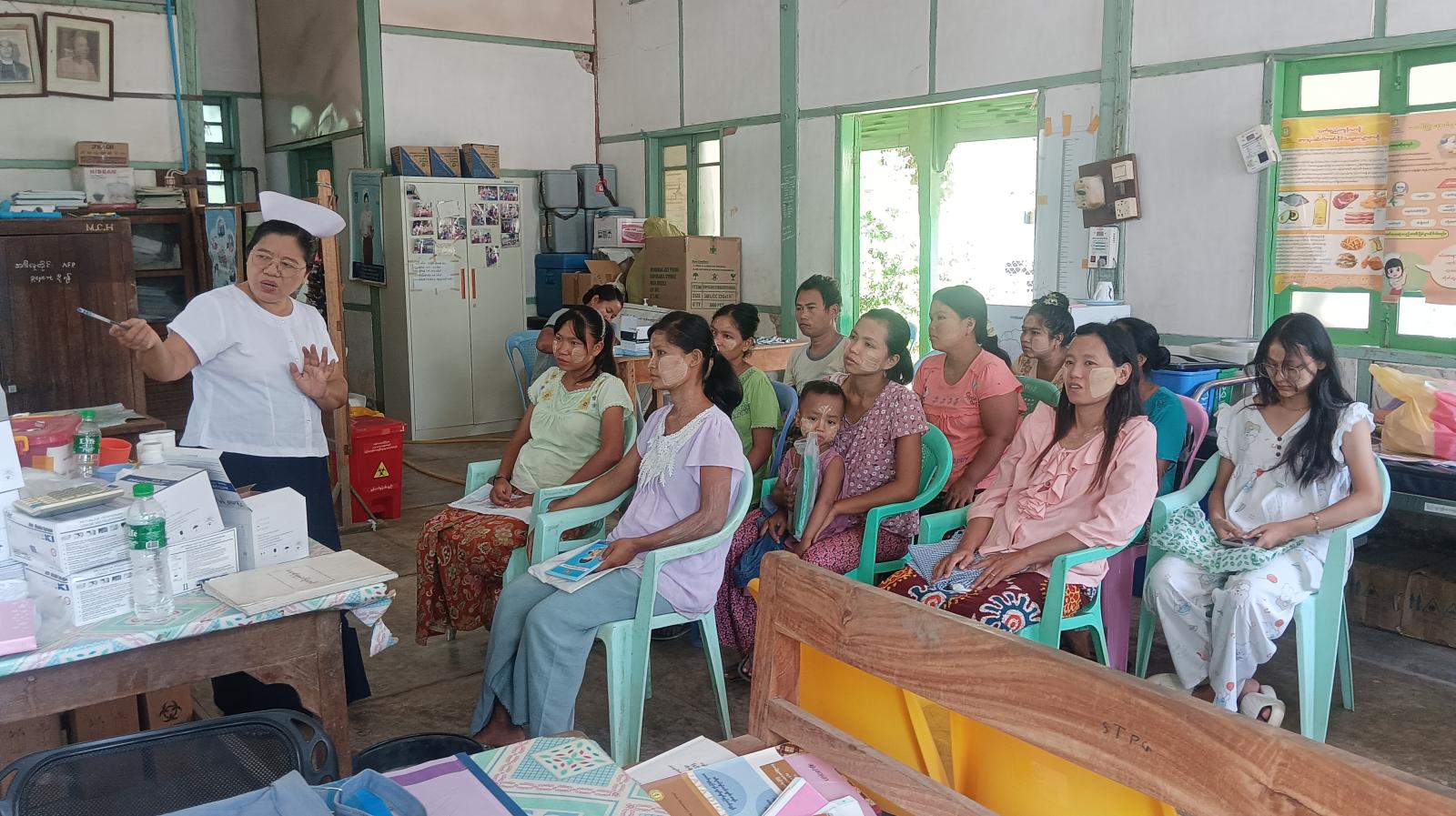 ရှေးဦးစွာ မြို့နယ်မိခင်နှင့်ကလေးကျန်းမာရေးဌာနမှ ကျန်းမာရေးဆရာမများက ကိုယ်ဝန်ဆောင်မိခင်များအနေဖြင့် အဟာရပြည့်ဝသည့် အစားအစာများစားသုံးတတ်ရန်နှင့် ဌာနကပေး သည့်ဆေးများကိုပုံမှန်သောက်သုံးရန်လိုကြောင်း၊ အစာအုပ်စု (၃) ခုပါဝင်အောင်စားသုံးရန်၊ က လေး ဉာဏ်ကောင်းရန်အိုင်အိုဒင်းဆားစားသုံးရန် လူစုလူဝေးရှောင်ရှားရန်နှင့်စနစ်တကျလက်ဆေးရန်တို့ကို ဆွေးနွေးဟောပြောခဲ့သည်။ ထို့နောက် ကိုယ်ဝန်ဆောင်မိခင်များအားလုံးကို တစ်ဦးချင်း ကျန်းမာရေးစစ်ဆေးပေးခြင်းများ ဆောင်ရွက်ပေးခဲ့ကြောင်း မြို့နယ်မိခင်နှင့် ကလေးကျန်းမာရေးဌာန တာဝန်ရှိသူတစ်ဦးထံမှသိရသည်။