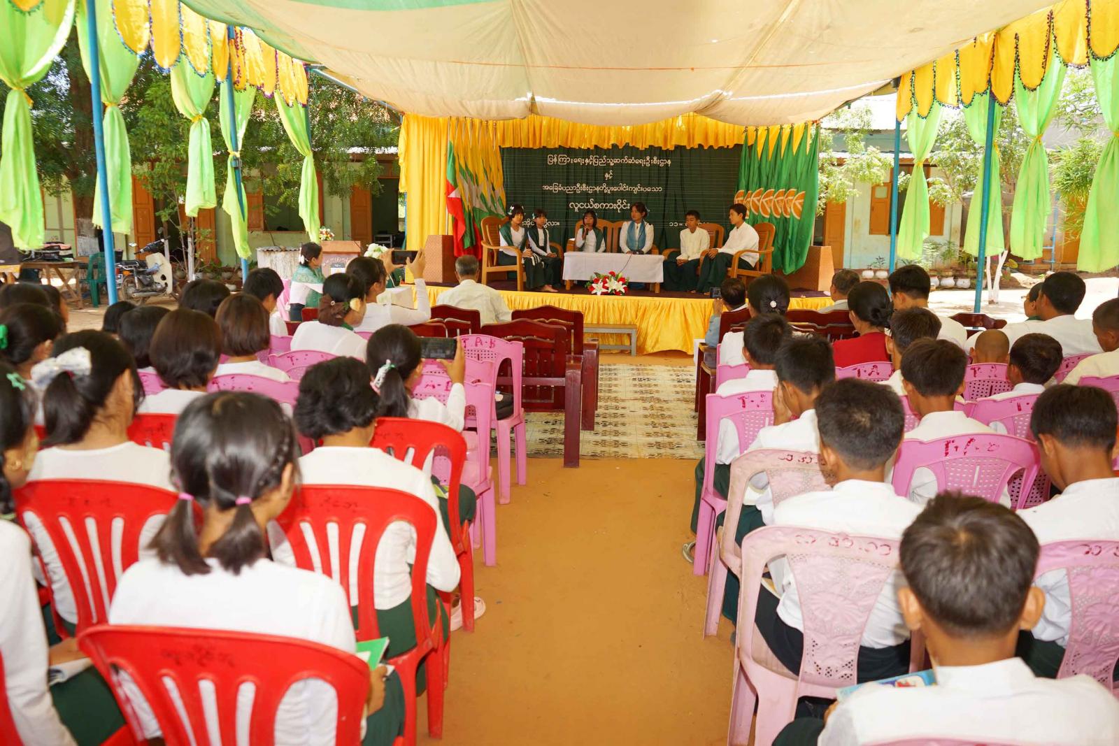 လူငယ်စကားဝိုင်းတွင် ခရိုင်ပညာရေးမှူး ဒေါ်မော်မော်က အမှာစကားပြောကြားခဲ့ပြီး မြို့နယ် စာရေးဆရာအသင်းမှ စာရေးဆရာ မြင့်မားအောင်က ဗလငါးတန်အကြောင်းကို ရှင်းလင်းပြောကြားသည်။ ယင်းနောက် မြို့နယ်စာရေးဆရာအသင်းမှ စာရေးဆရာရွှေညာမြေ မြသင်းကြိုင်က စာဖတ်ခြင်းအကြောင်းကို ရှင်းလင်းပြောကြားခဲ့ပြီး ခရိုင်ပြန်ကြားရေးနှင့်ပြည်သူ့ဆက်ဆံရေး ဦးစီးဌာနမှ လက်ထောက်ညွှန်ကြားရေးမှူး ဦးမျိုးမင်းဇော်က လူငယ်စကားဝိုင်းကျင်းပရခြင်းအကြောင်းကို ရှင်းလင်း ပြောကြားကာ ကျောင်းအုပ်ဆရာမကြီး ဒေါ်မြတ်စုလွင်က ကျေးဇူးတင်စကား ပြောကြားသည်။