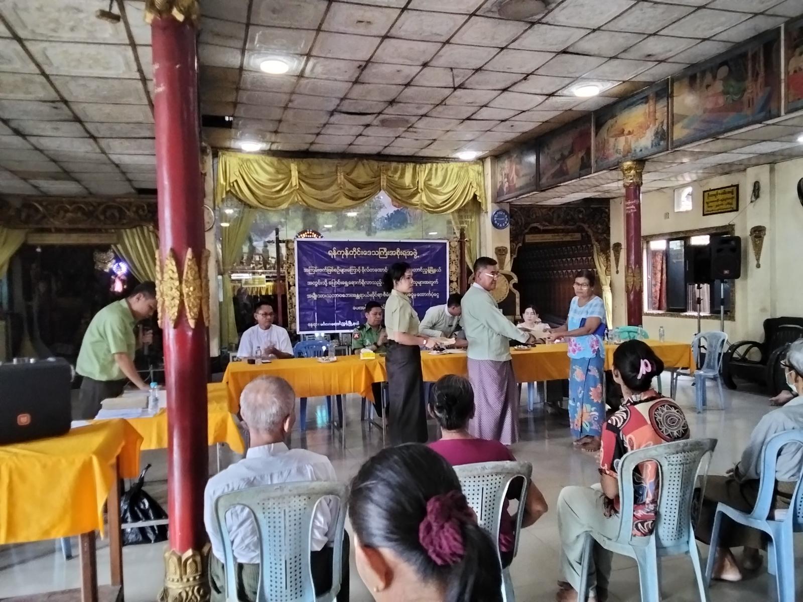 ထိုသို့ပေးအပ်ရာတွင် ရပ်ကွက်(၉)ရပ်ကွက်အတွင်း ယာယီနေရပ်စွန့်ခွာနေထိုင်ကြသည့် ပြည်သူတစ်ဦးလျှင် ငွေကျပ် ၆၀,၀၀၀ အား လက်၀ယ်အရောက်ပေးအပ်ခဲ့ကြောင်း သိရသည်။