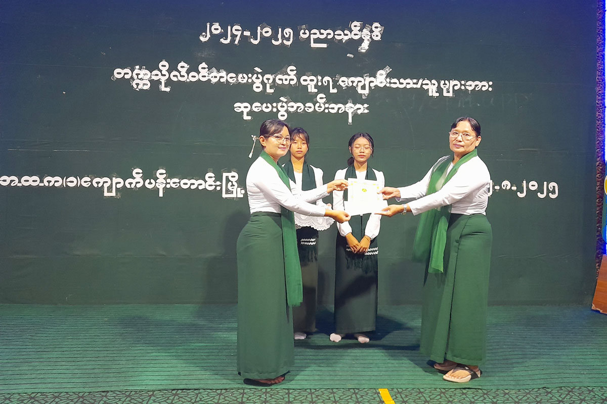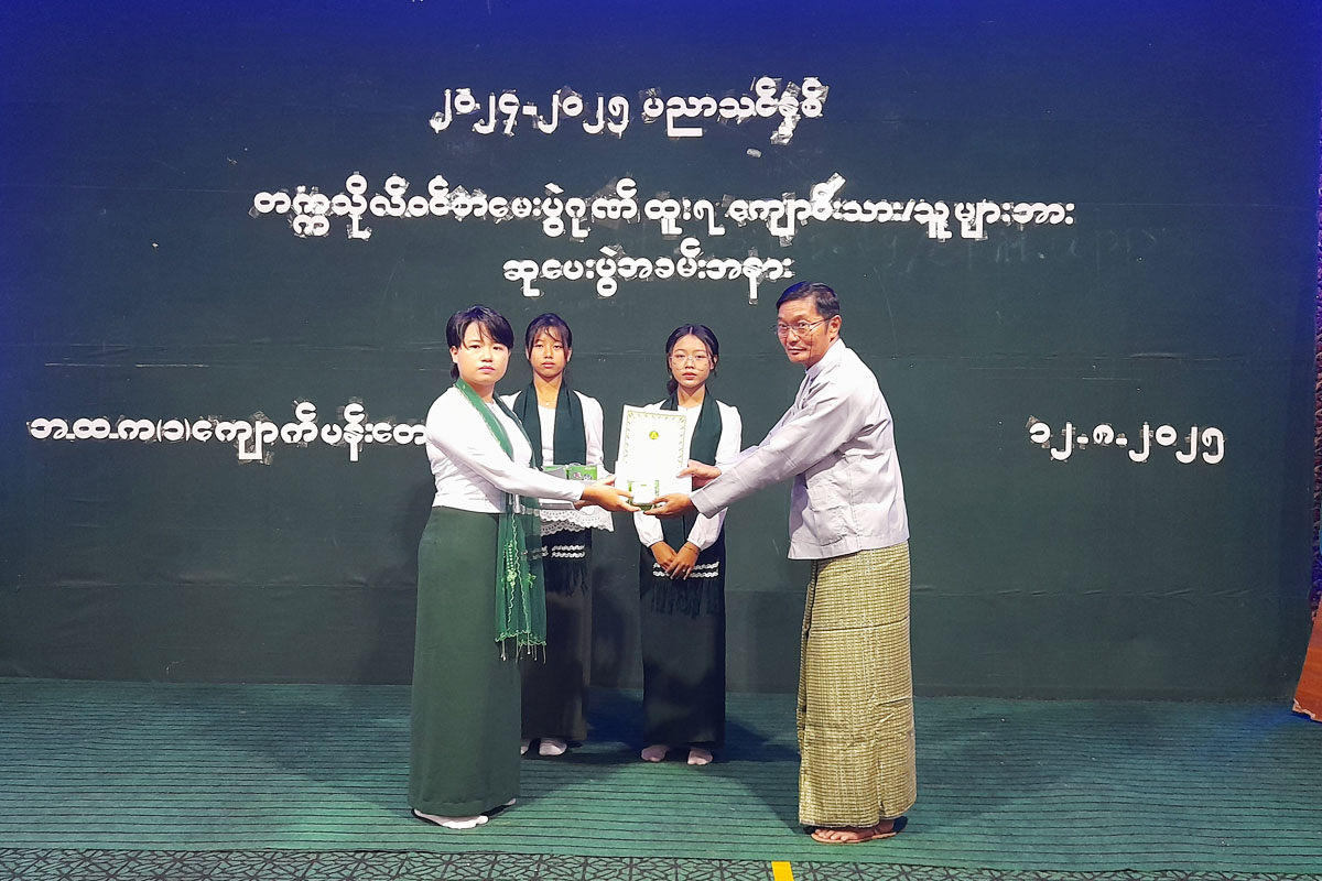 အမှတ် (၁) အခြေခံပညာအထက်တန်းကျောင်းတွင် ၂၀၂၄-၂၀၂၅ ပညာသင်နှစ်၊ တက္ကသိုလ်ဝင်စာမေးပွဲကို (၅၄)ဦး ဝင်ရောက်ဖြေဆိုခဲ့ရာ၊ အောင်ချက်ရာခိုင်နှုန်း (၂၇.၇၈) ရာခိုင်နှုန်းရှိကြောင်းနှင့် ၎င်းတို့အနက် ၃ ဘာသာ(၁)ဦး၊ ၂ ဘာသာ (၂)ဦး၊ ၁ ဘာသာ(၃)ဦး ပါဝင်ပြီး၊ လူရည်ချွန်(၂)ဦး ရရှိကြောင်းနှင့် အားကစားအနေဖြင့် ပြေးခုန်ပစ် တိုင်းလက်ရွေးစင်တစ်ဦး ပါဝင်ကြောင်း သိရသည်။ ဆုချီးမြှင့်ပွဲ အခမ်းအနားသို့ ခရိုင်နှင့်မြို့နယ် ပညာရေးဌာနမှ တာဝန်ရှိသူများ၊ ကျောင်းအုပ်ဆရာမကြီးနှင့် ဆရာ၊ ဆရာမများ၊ ကျောင်းသား၊ ကျောင်းသူများ စုစုပေါင်း (၅၄၈)ဦး တက်ရောက်ခဲ့ကြောင်း သိရသည်။