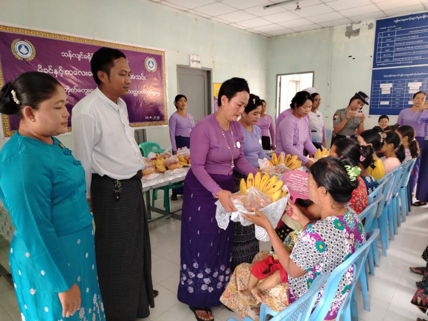 ဆက်လက်၍ ကိုယ်ဝန်ဆောင်များ၊ နို့တိုက်မိခင်များနှင့်ပတ်သက်သော အသိပညာဗဟုသုတများအား ကျေးလက်ကျန်းမာရေးမှူး ဒေါ်စိုးစိုးသိန်းက ဟောပြောဆွေးနွေးခဲ့သည်။ ယင်းနောက် ခရိုင်မိခင်နှင့်ကလေးစောင့်ရှောက်မှုကြီးကြပ်ရေးအဖွဲ့ ဒုတိယဥက္ကဋ္ဌက ဖြည့်စွက်မှာကြားပြီး ကလေးငယ်များအား ကိုယ်အလေးချိန်တိုင်းတာခြင်း၊ ကိုယ်ဝန်ဆောင်မိခင်များအား ကြက်ဥ၊ ငှက်ပျောသီးဖီးကြမ်း၊ အိုင်အိုဒင်းဆား၊ ကုလားပဲများအား အာဟာရဖြစ်စေရန် ပေးအပ်ခဲ့ကြောင်း သိရသည်။