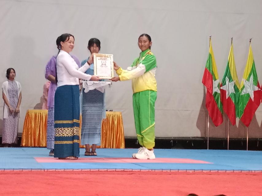 ထို့နောက် ၂၀၂၅ ခုနှစ် မြန်မာ့သိုင်းပြိုင်ပွဲတွင်ဆုရရှိခဲ့ကြသော အားကစားသမားမောင်မယ်များကို ဂုဏ်ပြုဆုတံဆိပ်နှင့်ဆုငွေများအား တာဝန်ရှိသူများက အသီးသီးပေးအပ်ချီးမြှင့်ခဲ့ကြပြီး အုပ်ချုပ်သူနည်းပြနှင့်အားကစားသမားများက စွယ်စုံတံခွန်စိုက်ဆုဖလားများအား မြို့နယ်စီမံခန့်ခွဲရေးနှင့်အုပ်ချုပ်ရေးကော်မ တီဥက္ကဋ္ဌဦးထူးကျော်နှင့် တာဝန်ရှိသူများထံ လွှဲပြောင်းပေးအပ်ကြသည်။