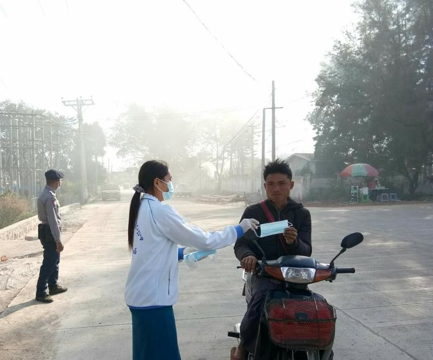 ထိုသို့ဆောင်ရွက်ရာတွင် အဆိုပါလမ်းများ၌ Mask တပ်ဆင်လာခြင်းမရှိသူများ၊ Mask များအား ရောဂါပိုး အဓိက ကာကွယ်ရမည့်နေရာတွင် တပ်ဆင်ခြင်းမရှိပဲ မေးစေ့တွင်ချိတ်သူများအား နောင်တွင် ပြင်ပထွက်ခွာချိန်တိုင်း Mask တပ်ဆင်ရန်နှင့် ကျန်းမာရေးနှင့် အားကစား ဝန်ကြီး ဌာန၏ လမ်းညွှန်ချက်များနှင့်အညီ Mask ကို စနစ်တကျ တပ်ဆင်ရေး အတွက် အသိပညာပေး ပြောကြား ပြီး Mask(၂၅၀)ခု ဖြန့်ဝေပေးခဲ့ကြသည်။