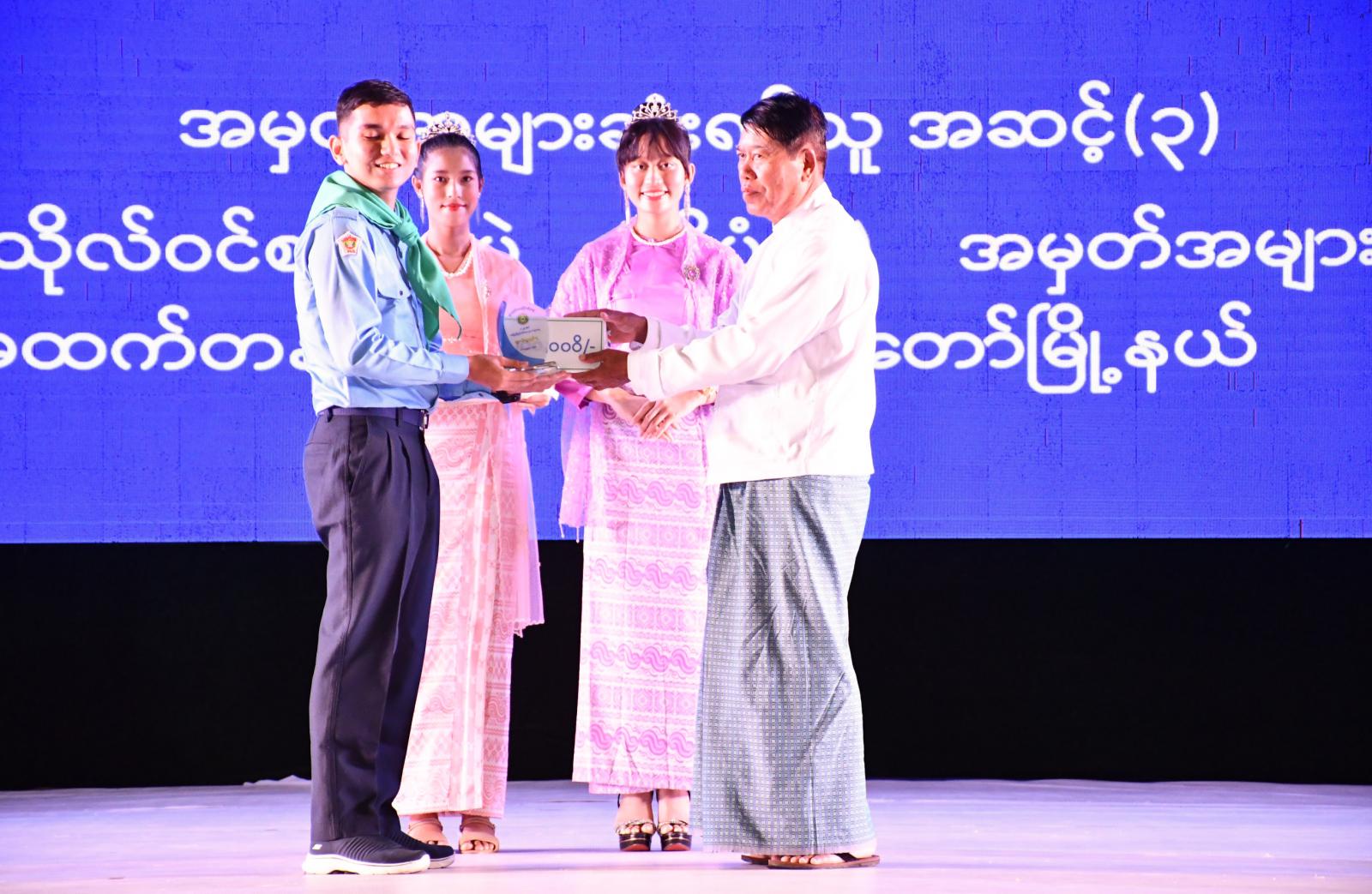 ထို့နောက် ထူးချွန်လူငယ်များအား တိုင်ဒေသကြီးဝန်ကြီးချုပ်နှင့် တာဝန်ရှိသူများက ဂုဏ်ပြုဆုများ ပေးအပ်ချီးမြှင့်ကြပြီး ရန်ကုန်တိုင်းဒေသကြီးအစိုးရအဖွဲ့ ဝန်ကြီးချုပ်ထံသို့ ထူးချွန်လူငယ်များမှ အပြည်ပြည်ဆိုင်ရာလူငယ်များနေ့ အထိမ်းအမှတ်လက်ဆောင်အား ဂါရဝပြုပေးအပ်သည်။