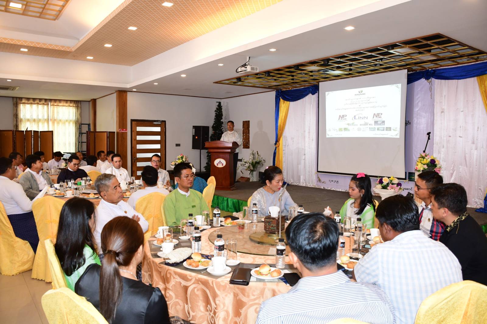 နေပြည်တော်ကောင်စီနယ်မြေအတွင်းရှိ MSME Association အသင်းသူ၊ အသင်းသားများ၏ သားသမီးများမှ Grade-12 အောင်မြင်/ဂုဏ်ထူးဖြင့် အောင်မြင်သူ ကျောင်းသား၊ ကျောင်းသူများကို ဆုချီးမြှင့်ခြင်းအခမ်းအနားနှင့် MSME Association (Naypyitaw) တွင် လစ်လပ်ရာထူးနေရာများအား ပြန်လည်ခန့်အပ်နိုင်ရေးအခမ်းအနားကို ယမန်နေ့ မွန်းလွဲပိုင်းတွင် ဇမ္ဗူသီရိမြို့နယ်၊ Mandalay Paradise ၊ တော်ဝင်ခန်းမ၌ ကျင်းပရာ နေပြည်တော် အသေးစားနှင့် အလတ်စား စက်မှုဇုန်ကြီးကြပ်ရေးကော်မတီဥက္ကဋ္ဌ၊ နေပြည်တော်ကောင်စီဝင် ဦးဇေယျာလင်း၊ နေပြည်တော် MSME Associationအသင်း နာယက ဦးကျော်စွာဝင်းနှင့် အသင်းဥက္ကဋ္ဌ ဦးသူရိန်၊ MSME လုပ်ငန်းရှင်များ၊ ဌာနဆိုင်ရာတာဝန်ရှိသူများ၊ ဆုရကျောင်းသား၊ ကျောင်းသူများနှင့် မိဘများတက်ရောက်သည်။