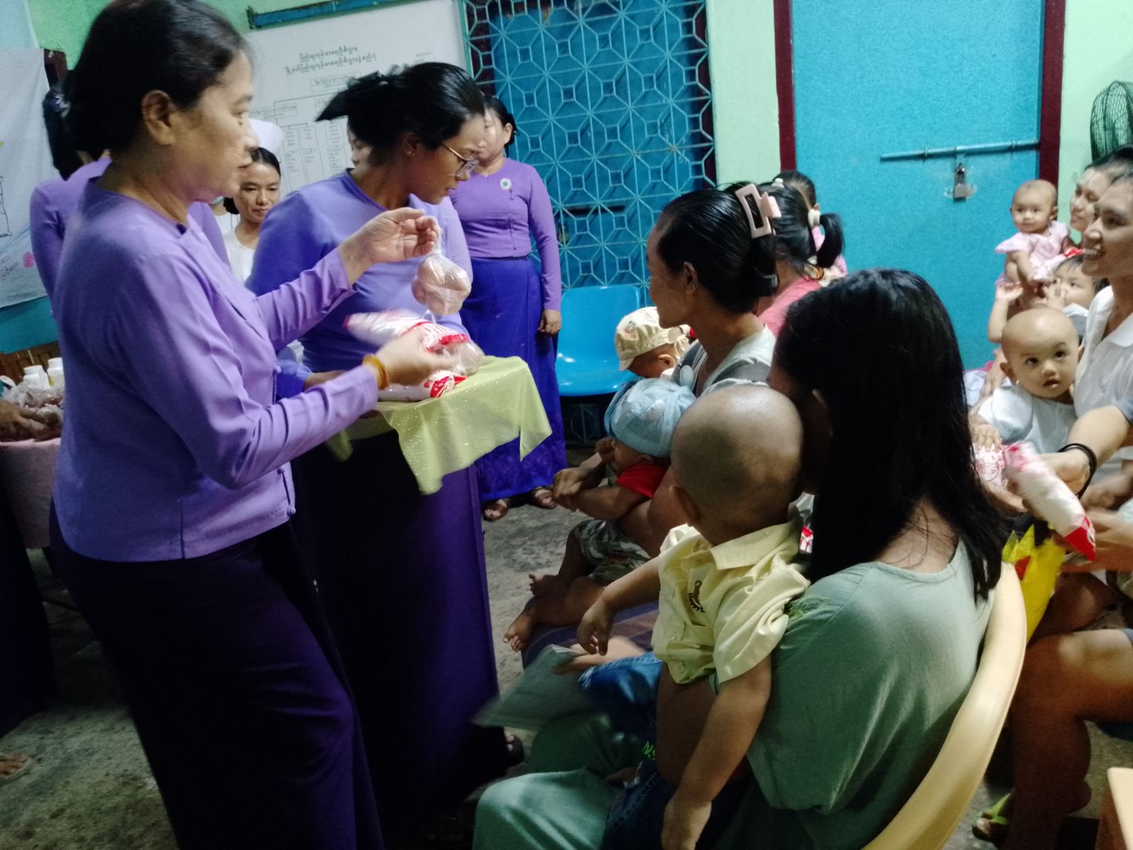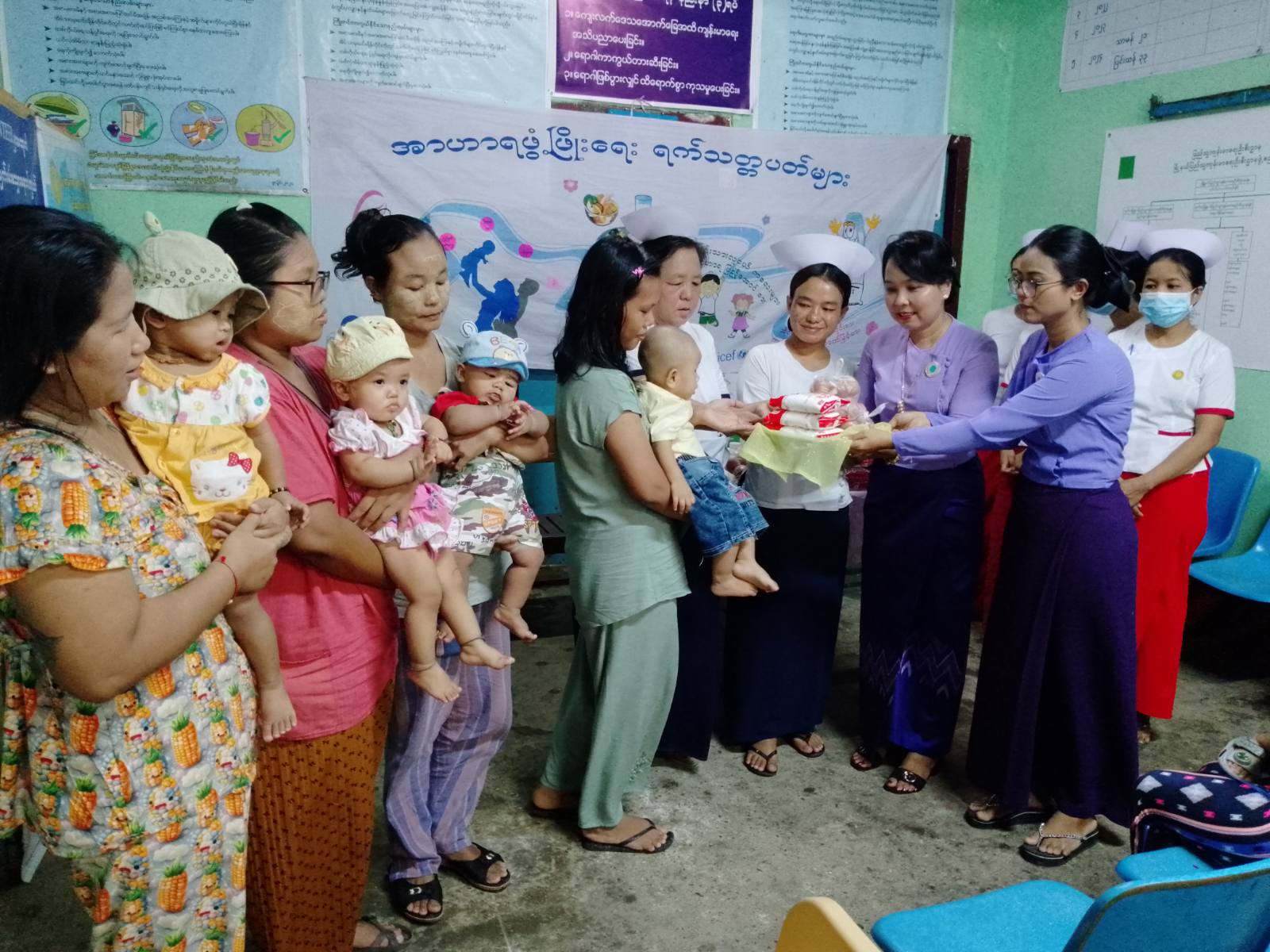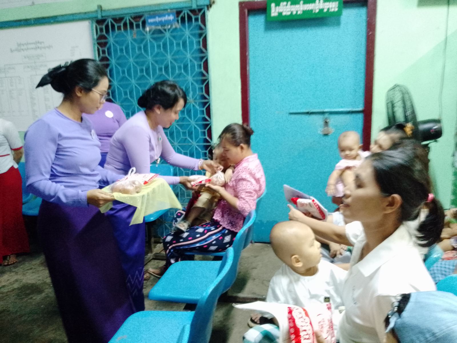 ထို့နောက် ကမာရွတ်ခရိုင် မိခင်နှင့်ကလေးစောင့်ရှောက်မှုကြီးကြပ်ရေးအဖွဲ့ဥက္ကဋ္ဌ ဒေါ်နီနီအေး၊ မြို့နယ်မိခင်နှင့်ကလေးစောင့်ရှောက်ရေးအသင်းဥက္ကဋ္ဌ ဒေါ်နန်းကလျာအေး၊ တာဝန်ရှိသူများက ကိုယ်ဝန်ဆောင်မိခင်များအား တစ်ဦးလျှင် ကြက်ဥနှင့် အိုင်အိုဒင်းဆားများ ပေးအပ်ခဲ့ကြောင်း သိရသည်။