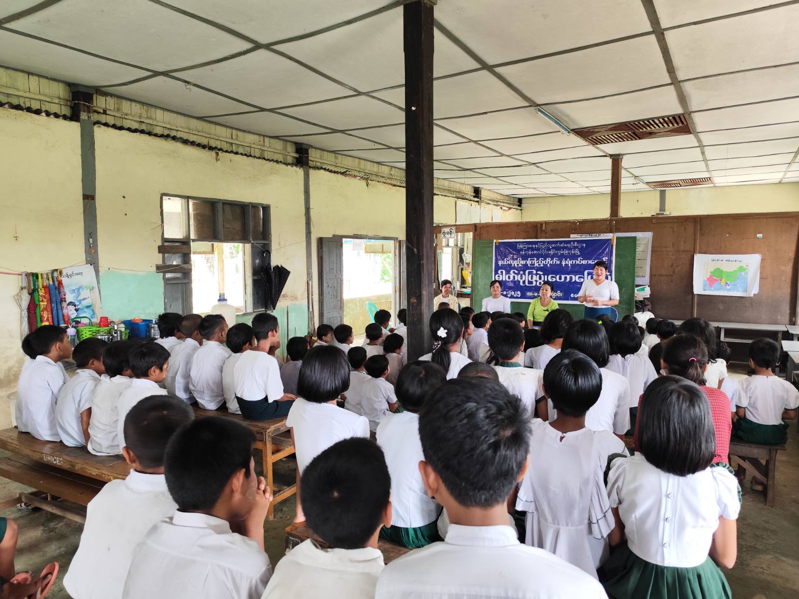 ထို့နောက် ကျောင်းသား/ကျောင်းသူများမှ စာအုပ်စာစောင်များအား စိတ်ပါဝင်စားစွာ ဖတ်ရှုကြပြီးပြသထားသော နံရံကပ်စာစောင်များအား ကျောင်းသား/ကျောင်းသူများက လေ့လာကြည့်ရှုကြကြောင်း သိရသည်။