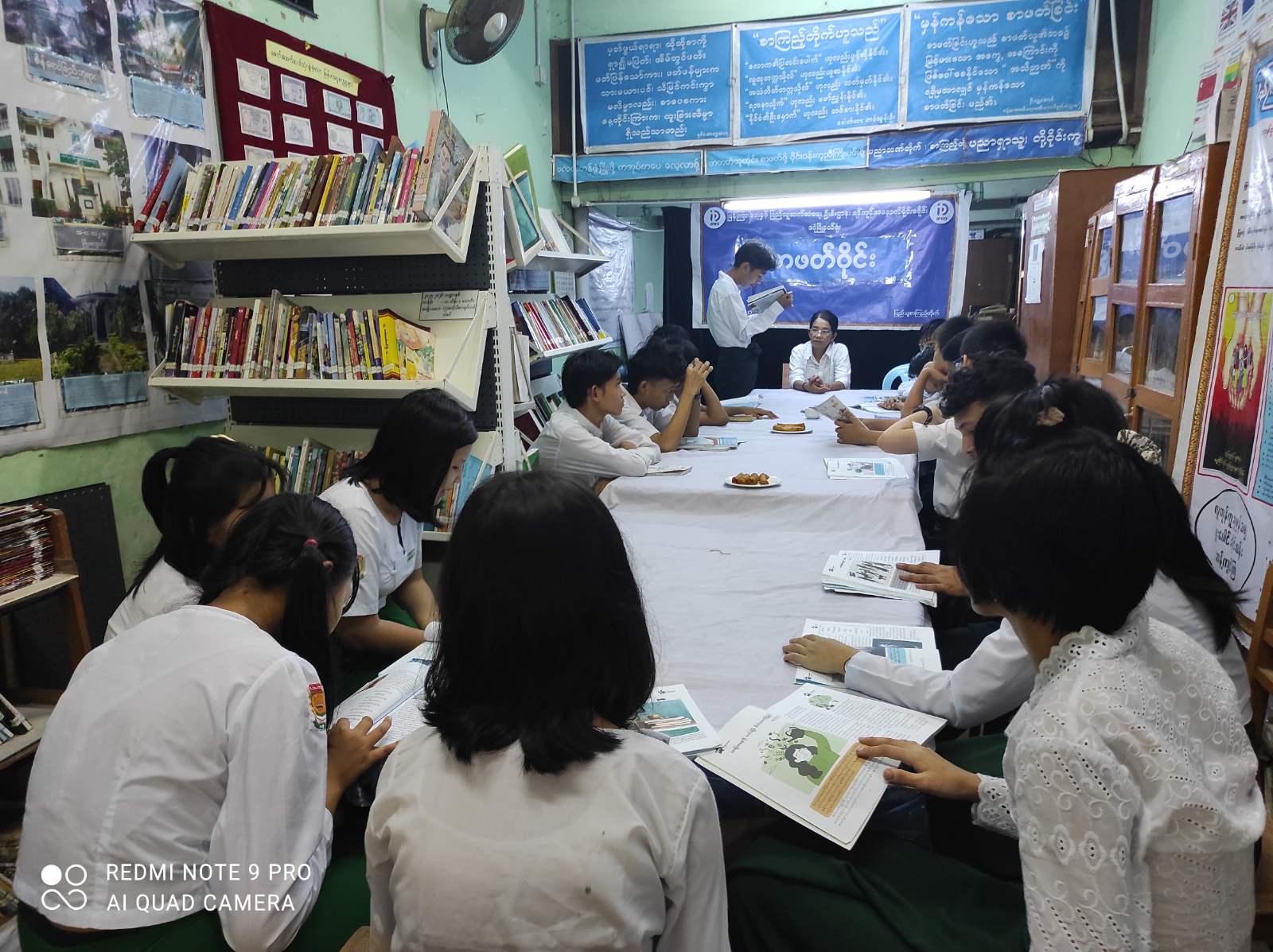 အဆိုပါစာဖတ်ဝိုင်းတွင် ပြန်ကြားရေးနှင့်ပြည်သူ့ဆက်ဆံရေးဦးစီးဌာနမှ မြို့နယ်ဦးစီးအရာရှိ ဒေါ်လဲ့လဲ့အေးမှ စာဖတ်ဝိုင်းကျင်းပရခြင်း ရည်ရွယ်ချက်ကို ပြောကြားခဲ့သည်။ ဆက်လက်၍ Grade 8 မှ မောင်နေမျိုးဇော်မှ လူငယ်နှင့် ကျန်းမာရေးခေါင်းစဉ်ကို ဖတ်ကြားခဲ့သည်။ Grade 6 မှ မသွင်ရှင်းထက်က လူငယ်နှင့်အပေါင်းအသင်းခေါင်းစဉ်ဖြင့် ဖတ်ကြားခဲ့သည်။ ဆက်လက်၍ Grade 6 မှ မလှနှင်းဝေက "လူငယ်နှင့်ပညာ" ခေါင်းစဉ်ဖြင့် ဖတ်ကြားဆွေးနွေးခဲ့သည်။ ကျောင်းသား၊ ကျောင်းသူများ ဆွေးနွေးမှုကို ဒေါ်လဲ့လဲ့အေး (ဦးစီးအရာရှိ) က ပြန်လည်သုံးသပ်ဆွေးနွေးခဲ့သည်။ စာဖတ်ဝိုင်းသို့ လာရောက်သော ကျောင်းသား၊ ကျောင်းသူများက ပြသထားသော နံရံကပ်စာစောင်များ၊ ခင်းကျင်းပြသထားသော စာအုပ်များကို စိတ်ပါ၀င်စားစွာ ကြည့်ရှုခဲ့ကြသည်။