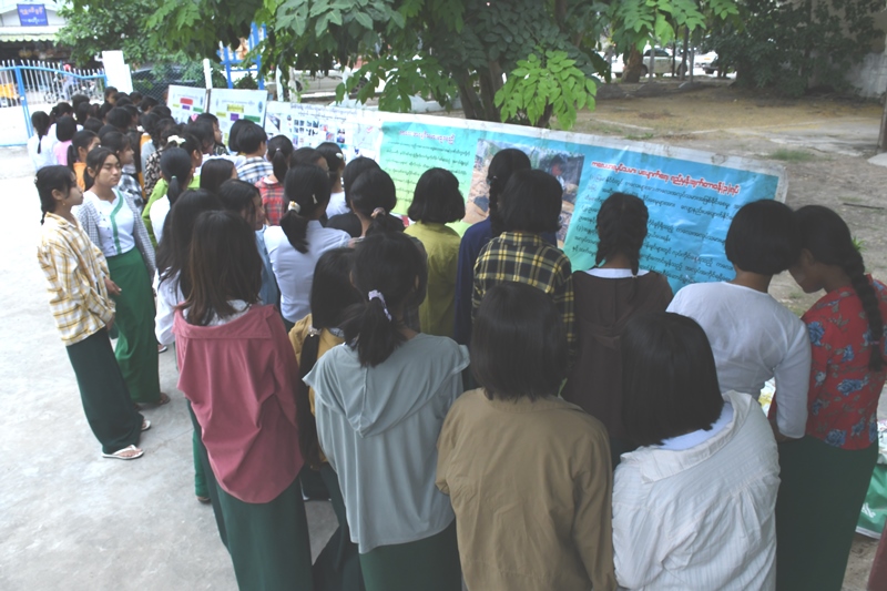 ထို့နောက် ခရိုင်ပြန်ကြားရေးနှင့်ပြည်သူ့ဆက်ဆံရေးဦးစီးဌာနမှ ဦးစီးအရာရှိဒေါ်ခင်နှင်းရီက အမျိုးသား မူးယစ်ဆေးဝါးထိန်းချုပ်ရေးမူဝါဒများဖြစ်သည့် ထုတ်လုပ်မှုလျှာ့ချရေးနှင့် အစားထိုးဖွံ့ဖြိုးရေး၊ သုံးစွဲမှုလျှော့ချရေးနှင့် နောက်ဆက်တွဲအန္တရာယ်လျှော့ချရေး၊ နိုင်ငံတကာပူးပေါင်းဆောင်ရွက်ရေး၊ သုတေသနလုပ်ငန်းများတိုးမြှင့်ရေး၊ လူ့အခွင့်အရေးပြဌာန်းချက်များနှင့်အညီဖြစ်စေရေးအကြောင်းများနှင့် မဟာဗျူဟာနှင့် နည်းဗျူဟာများဖြစ် သည့်မူးယစ်ဆေးဝါးပပျောက်ရေး လုပ်ငန်းများ ကို အမျိုးသားရေးတာဝန်အဖြစ်သတ်မှတ်၍ ဘက်ပေါင်းစုံမှ တိုက်ဖျက်ချေမှုန်းရေး၊ နယ်စပ်ဒေသနှင့် တိုင်းရင်းသားလူမျိုးတို့၏ လူနေမှုဘဝဖွံ့ဖြိုးတိုးတက်ရေးနှင့် ဘိန်းစိုက် ပျိုးမှုလုံးဝချုပ်ငြိမ်းပပျောက်ရေး၊ သုံးစွဲသူပပျောက်ရေး၊ ထုတ်လုပ်မှုပပျောက်ရေး၊ တားဆီးနှိမ်နှင်းရေးစသည့် အကြောင်းအရာများကို ရှင်းလင်းပြောကြားခဲ့ပြီး ကျောင်းသား၊ ကျောင်းသူများက ခရိုင်ပြန်ကြားရေးနှင့်ပြည်သူ့ဆက်ဆံရေးဦးစီးဌာနမှ ခင်းကျင်းပြသထားသော သုတ/ရသစာအုပ်များနှင့် အသိပညာပေး နံရံကပ်စာစောင်များကို စိတ်ပါဝင်စားစွာကြည့်ရှုလေ့လာခဲ့ကြောင်း သိရသည်။