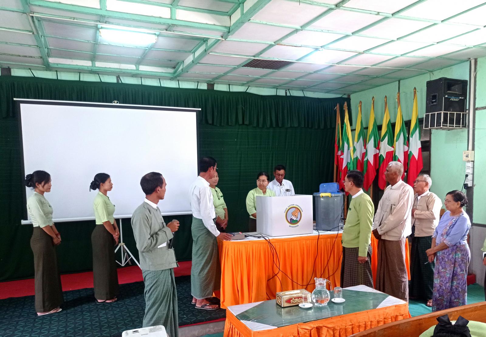 ဦးစွာ မြို့နယ်အုပ်ချုပ်ရေးမှူးဦးမျိုးသက်ကျော်က အမှာစကားပြောကြားပြီး မြို့နယ်ရွေးကောက်ပွဲကော်မရှင်အဖွဲ့ခွဲဥက္ကဋ္ဌနှင့်အဖွဲ့ဝင်များက တစ်ဦးချင်းမိတ်ဆက်စကားများပြောကြားခဲ့သည်။ ဆက်လက်ပြီး မြို့နယ်ရွေးကောက်ပွဲ ကော်မရှင်အဖွဲ့ခွဲရုံးမှဦးစီးအရာရှိ ဦးအောင်ကျော်စိုးက ရပ်/ကျေးအုပ်စုကော်မရှင်အဖွဲ့ခွဲများ ဖွဲ့စည်းတာဝန်ပေးအပ်နိုင်ရေးညှိနှိုင်းအစည်းအဝေးပြုလုပ်ရခြင်း၊ ရပ်/ကျေးအုပ်စုအုပ်ချုပ်ရေးမှူးများနှင့် စာရေးဝန်ထမ်းများအား မဲပေးစက်ဆိုင်ရာ အသိပညာပေးခြင်းတို့နှင့်ပတ်သက်၍ ရှင်းလင်းပြောကြားသည်။ ထို့နောက် တက်ရောက်လာသူများက သိရှိလိုသည်များမေးမြန်းဆွေးနွေးကြပြီး မဲပေးစက်ဖြင့် လက်တွေ့မဲ ပေးခြင်းများစမ်းသပ် ဆောင်ရွက်ခဲ့ကြကြောင်း သိရသည်။